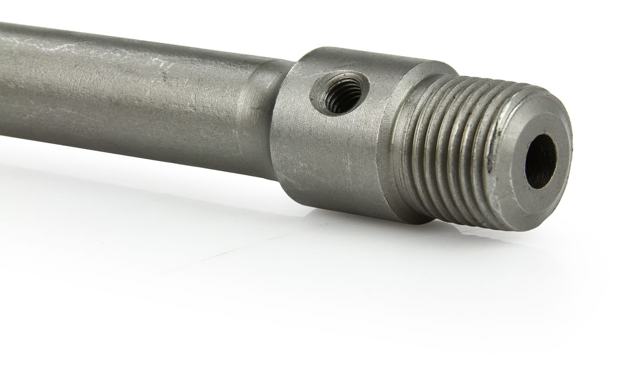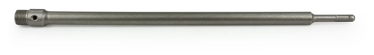 Adapter służy do przedłużenia frezów koronowych na długość 600 mm. Potrzebny wszędzie tam, gdzie należy wykonać otwory długości powyżej 600 mm.