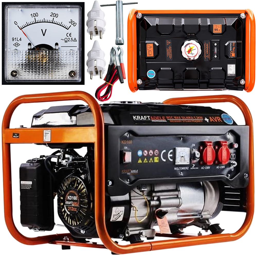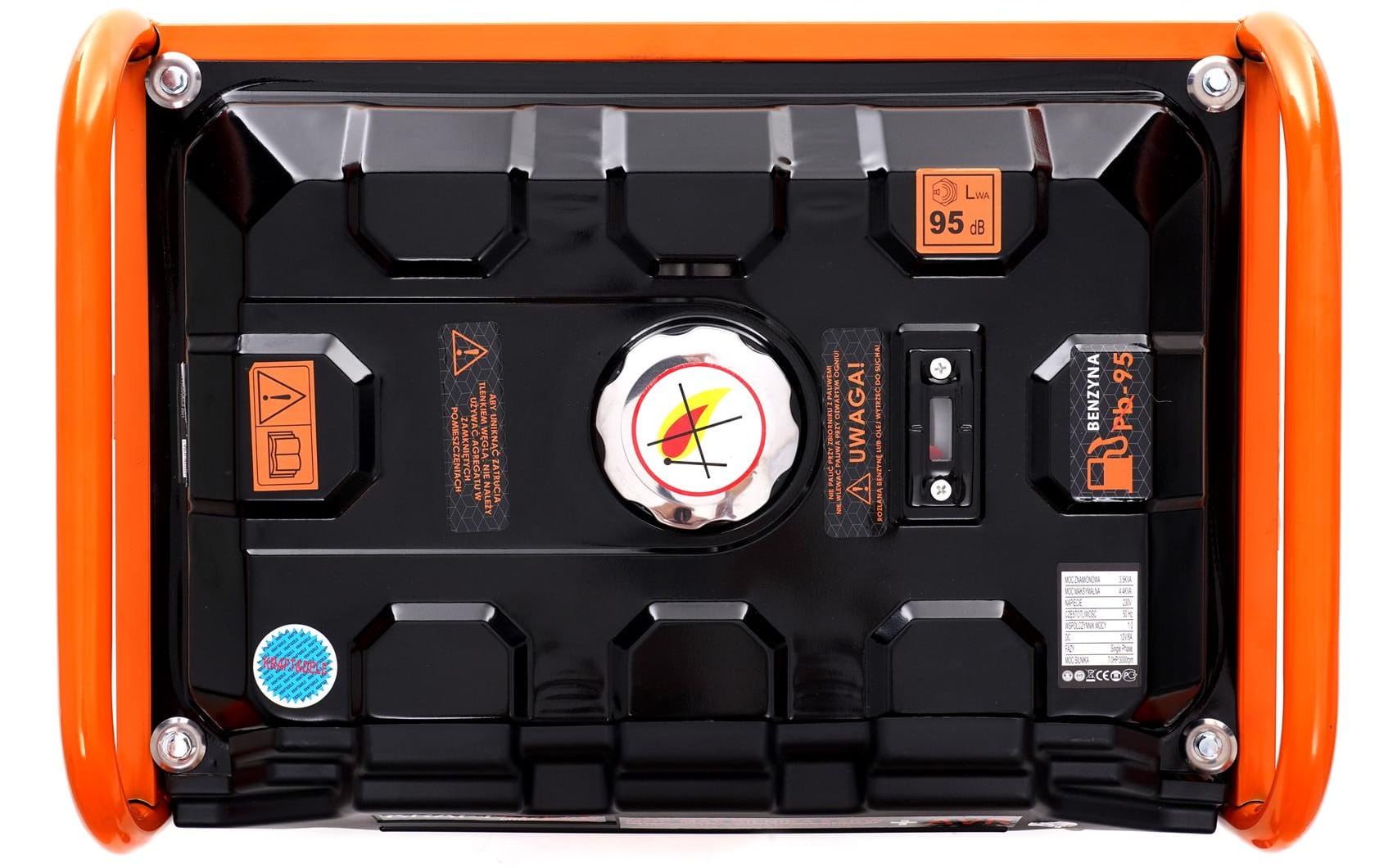 - Czytelne wskaźniki pracy – wbudowany woltomierz umożliwia kontrolę napięcia, a wskaźnik poziomu paliwa pozwala monitorować ilość paliwa w zbiorniku.