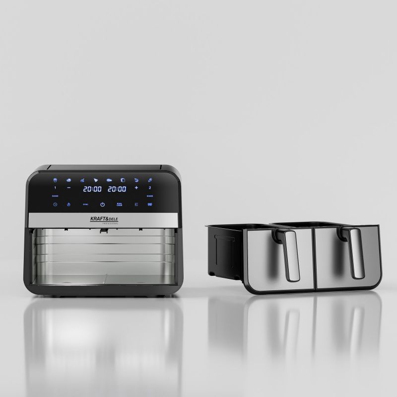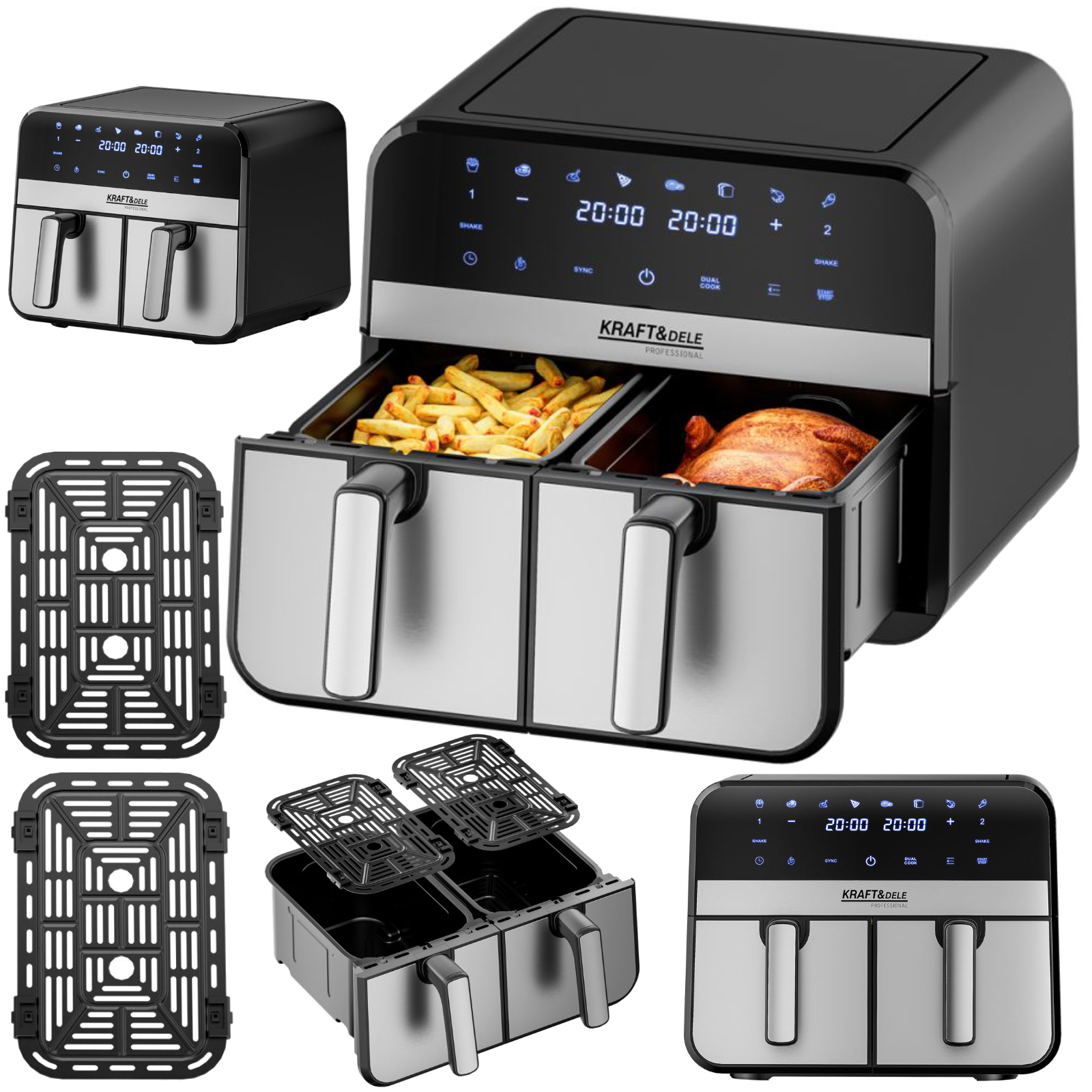 AIR FRYER FRYTKOWNICA BEZTŁUSZCZOWA DWUKOMOROWA DUŻA 12 PROGRAMÓW 9L 2500W
