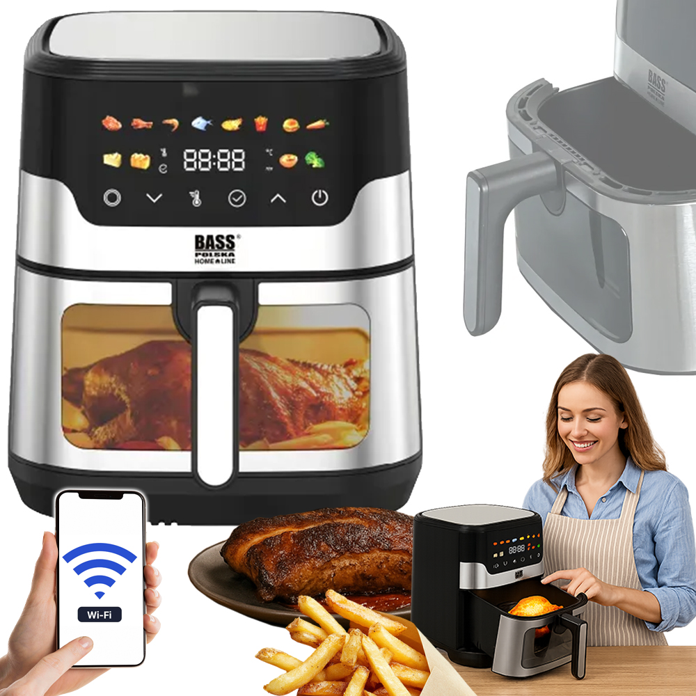 AIR FRYER FRYTKOWNICA BEZTŁUSZCZOWA Z OKIENKIEM 9L FRYTOWNICA 80–200°C WIFI