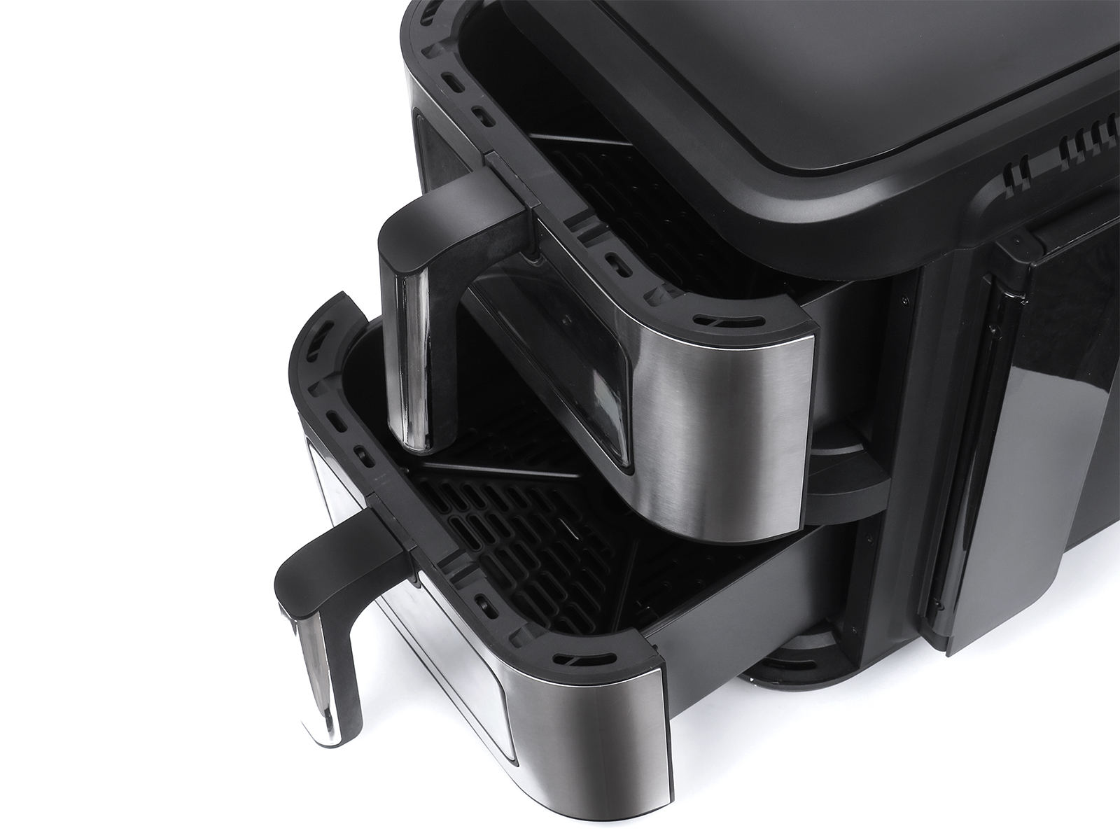 - Dwie niezależne komory – możliwość jednoczesnego przygotowania dwóch różnych dań bez mieszania smaków.