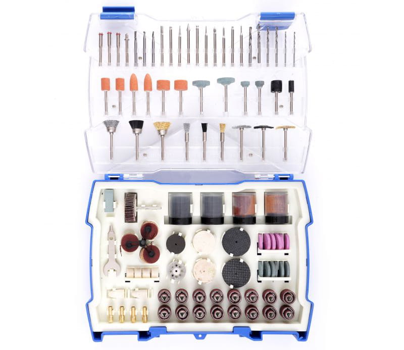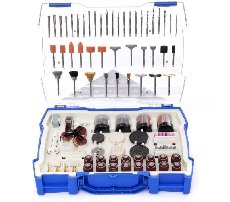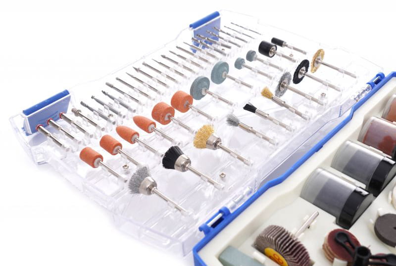 Zestaw zawiera akcesoria pozwalające na wykonywanie takich czynności jak: rzeźbienie, grawerowanie, szlifowanie, ostrzenie, czyszczenie, polerowanie, cięcie, i wiele innych.