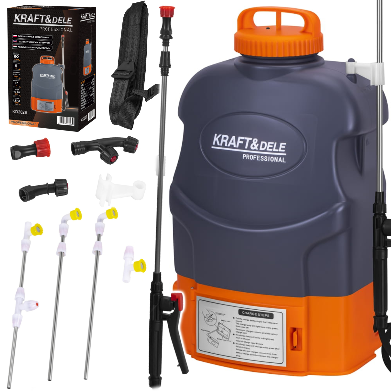 AKUMULATOROWY OPRYSKIWACZ OGRODOWY ELEKTRYCZNY PLECAKOWY 20L ZESTAW