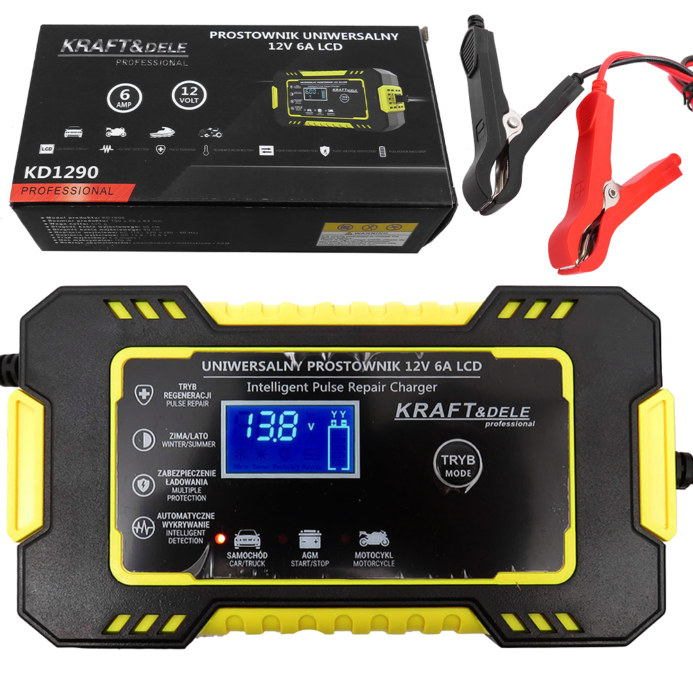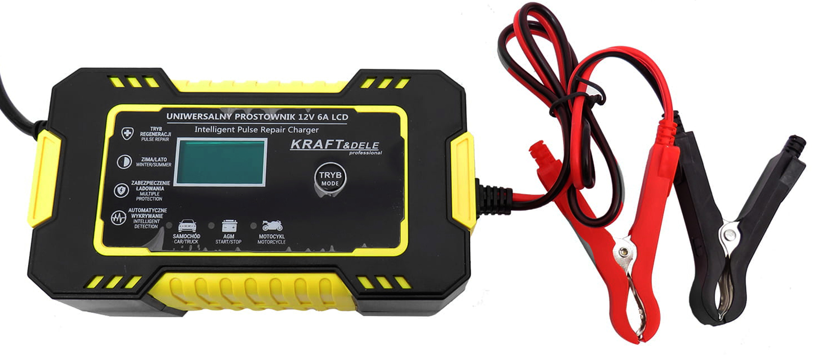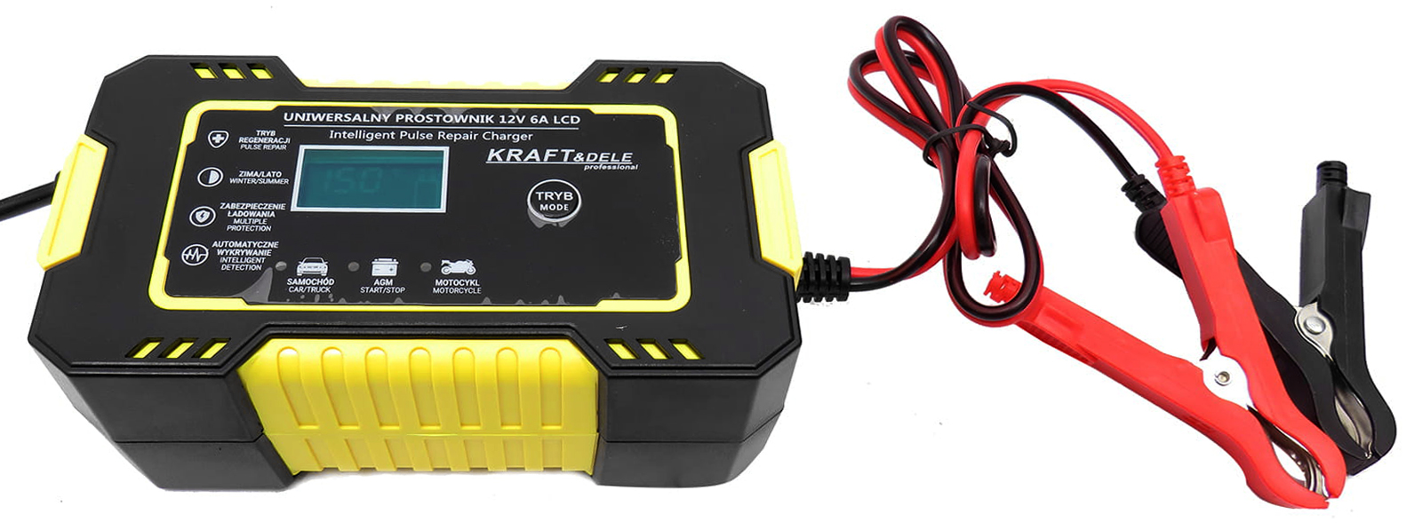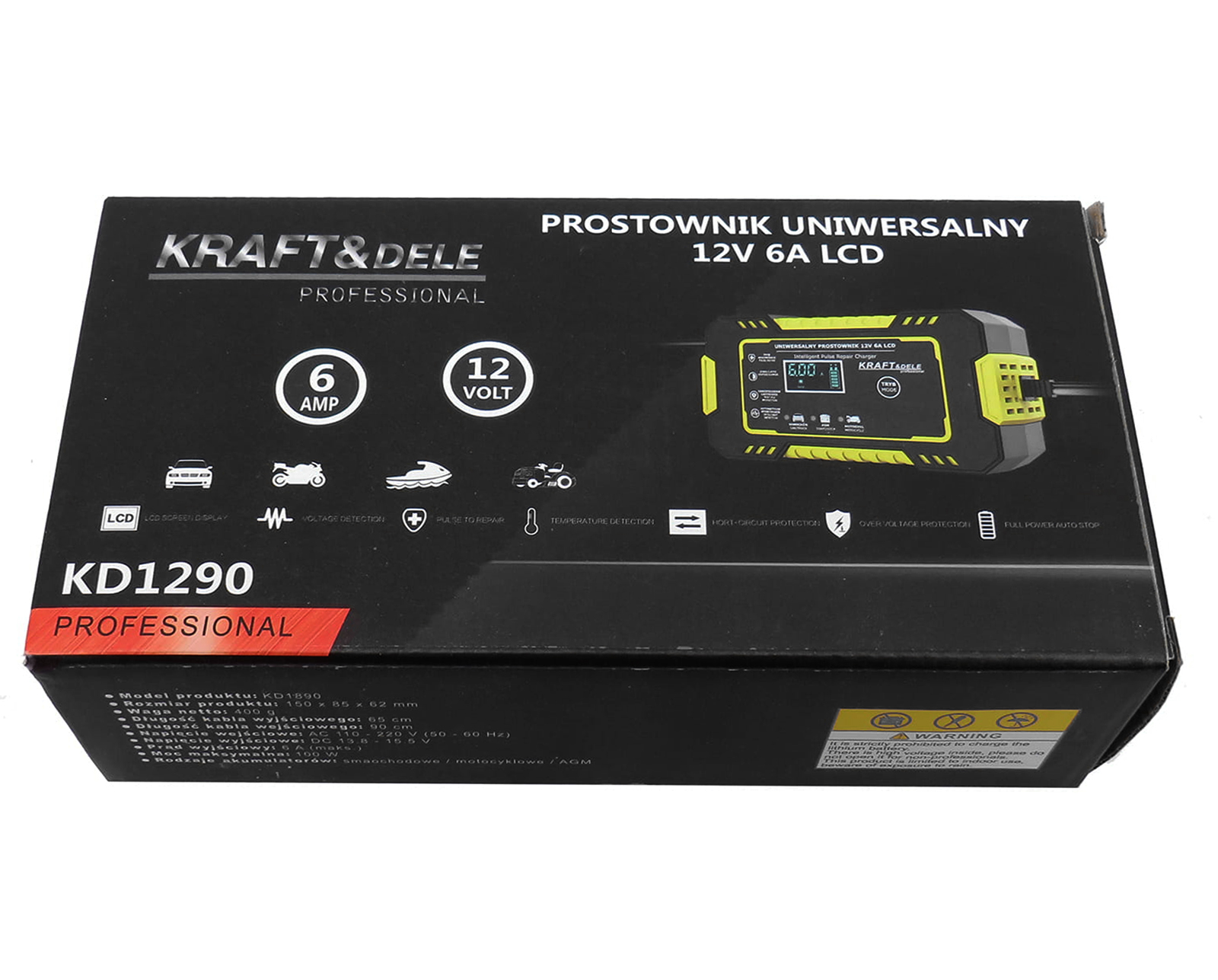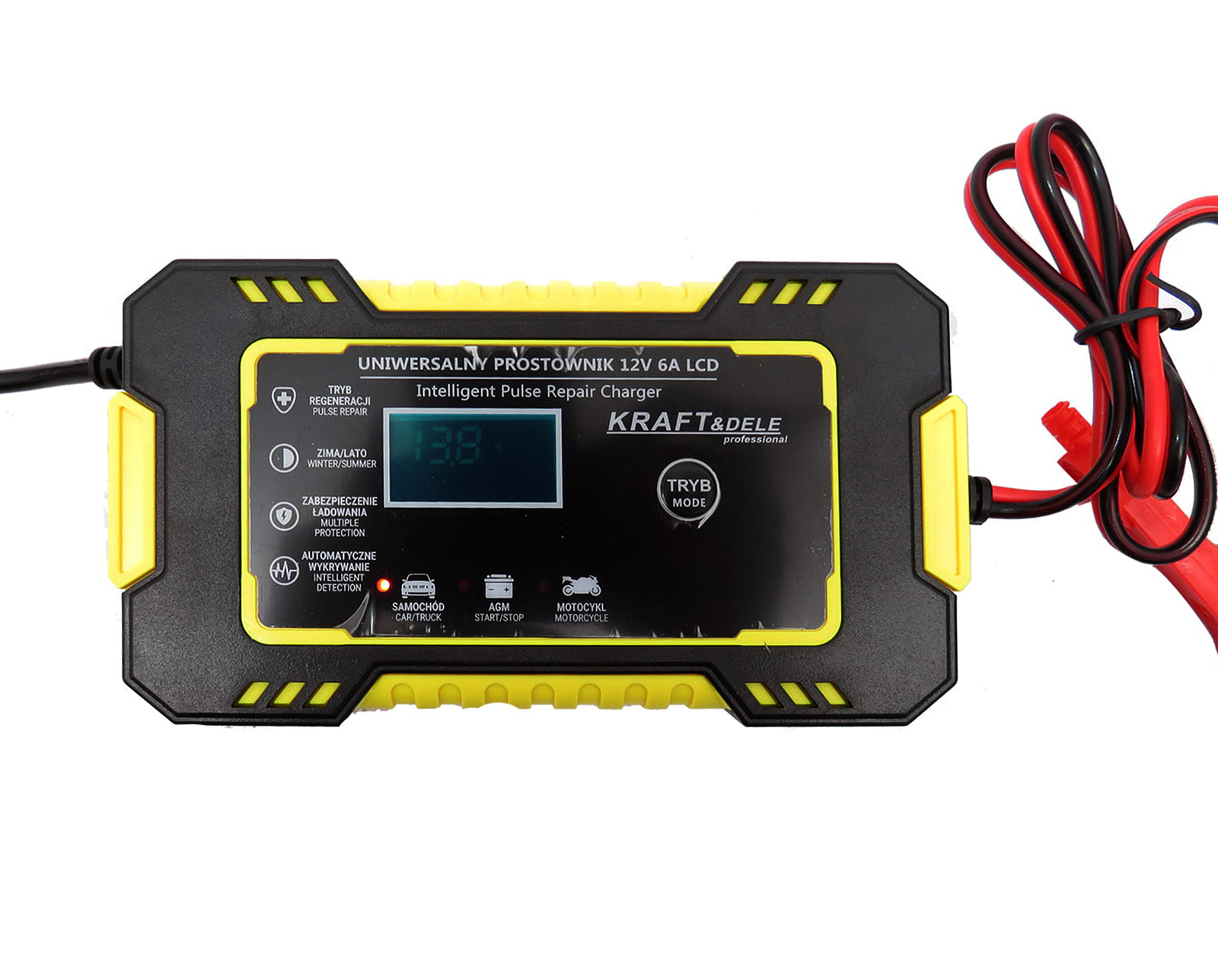 Wysokiej jakości automatyczny i precyzyjny prostownik mikroprocesorowy firmy KRAFT&DELE świetnie sprawdza się w profesjonalnych serwisach i warsztatach samochodowych jak i w przydomowych garażach. Urządzenie może ładować prądem o napięciu 12V.
