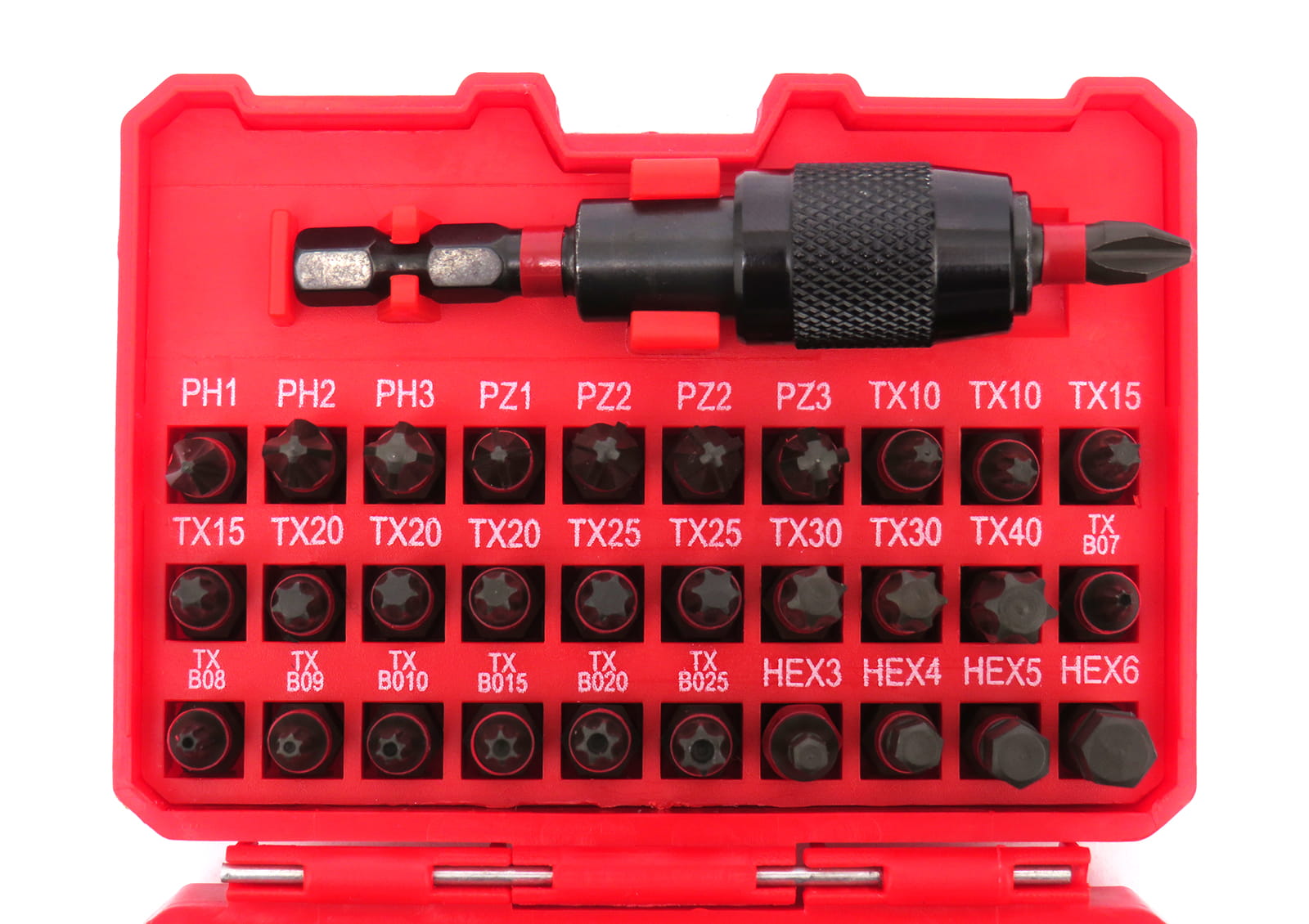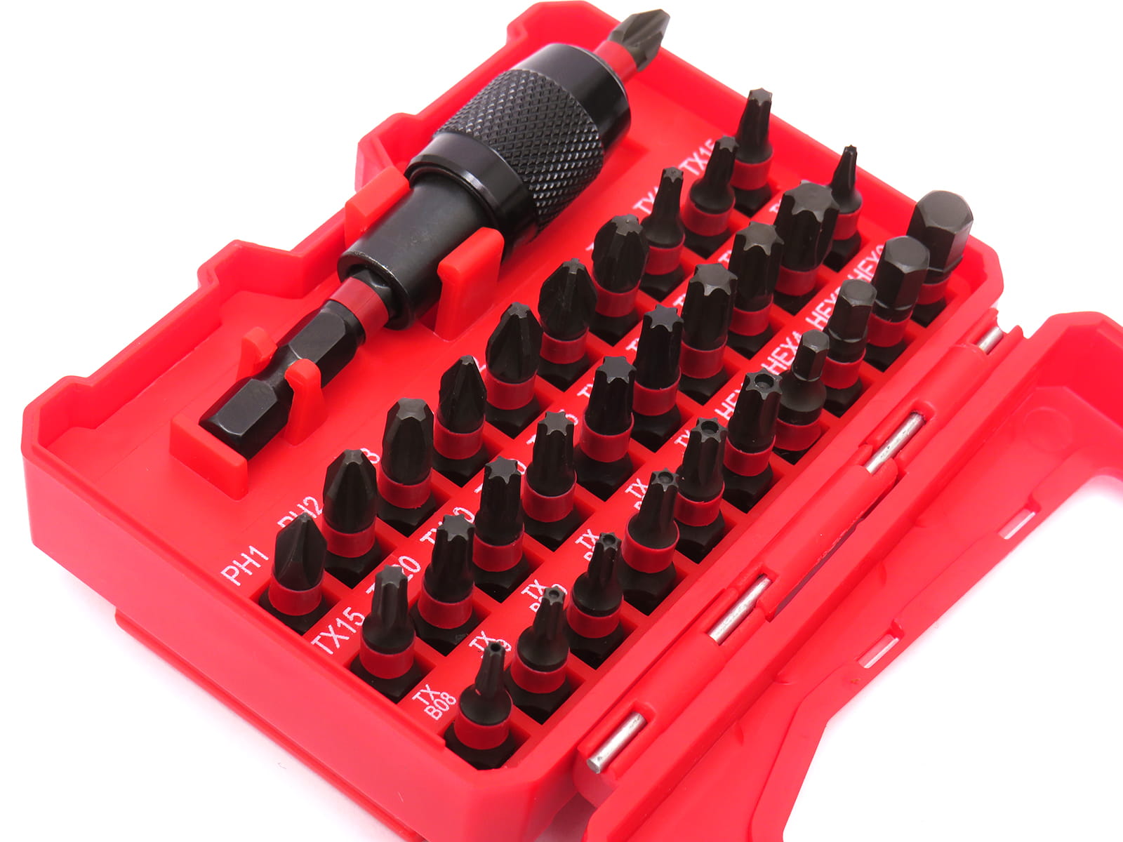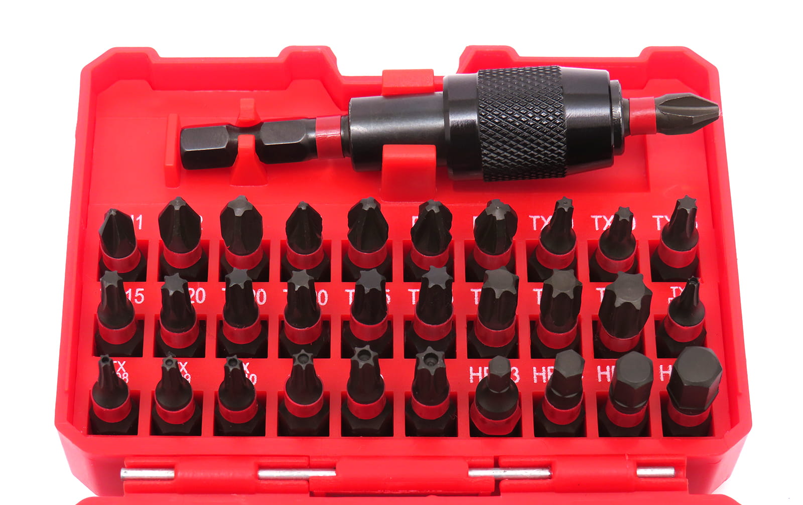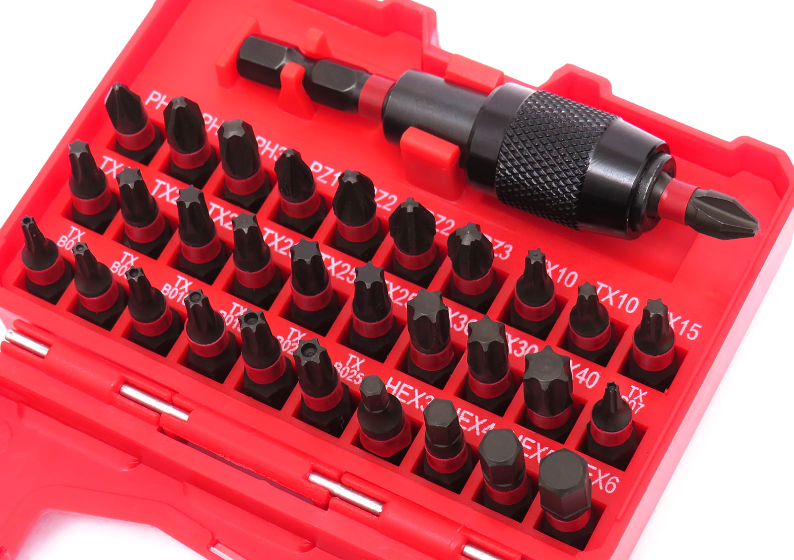 - Bity TORX: 2x TX10 ; 2x TX15 ; 3x TX20 ; 2x TX25 ; 2x TX3O ; TX40