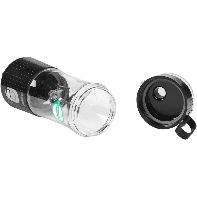 Korpus blendera wykonano z połączenia tworzyw PC i ABS, dzięki czemu jest lekki, a zarazem odporny na wstrząsy i pęknięcia. Antypoślizgowa podstawa zapewnia stabilność podczas pracy, a kompaktowa forma ułatwia przenoszenie i przechowywanie urządzenia. Pokrywa z blokadą zwiększa bezpieczeństwo transportu, a jej szczelne zamknięcie chroni napój przed wylaniem.