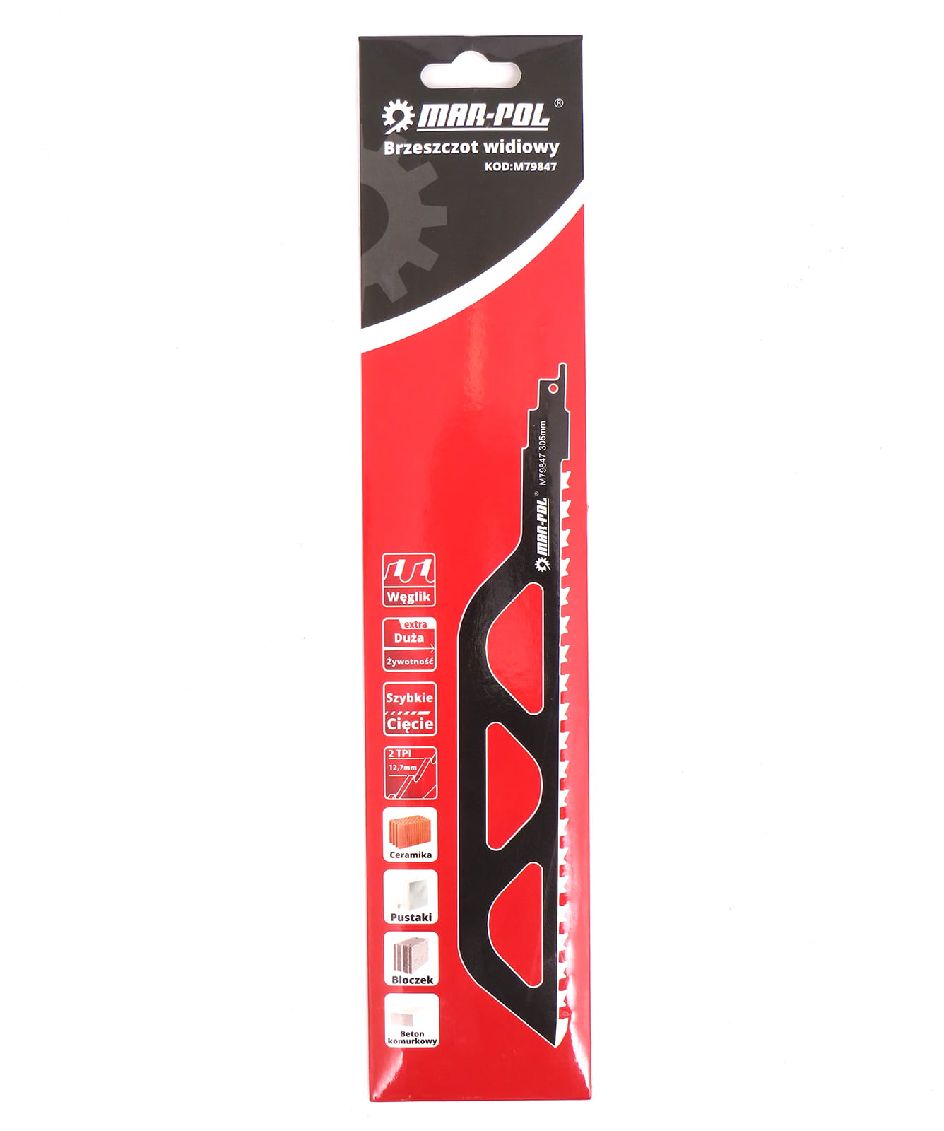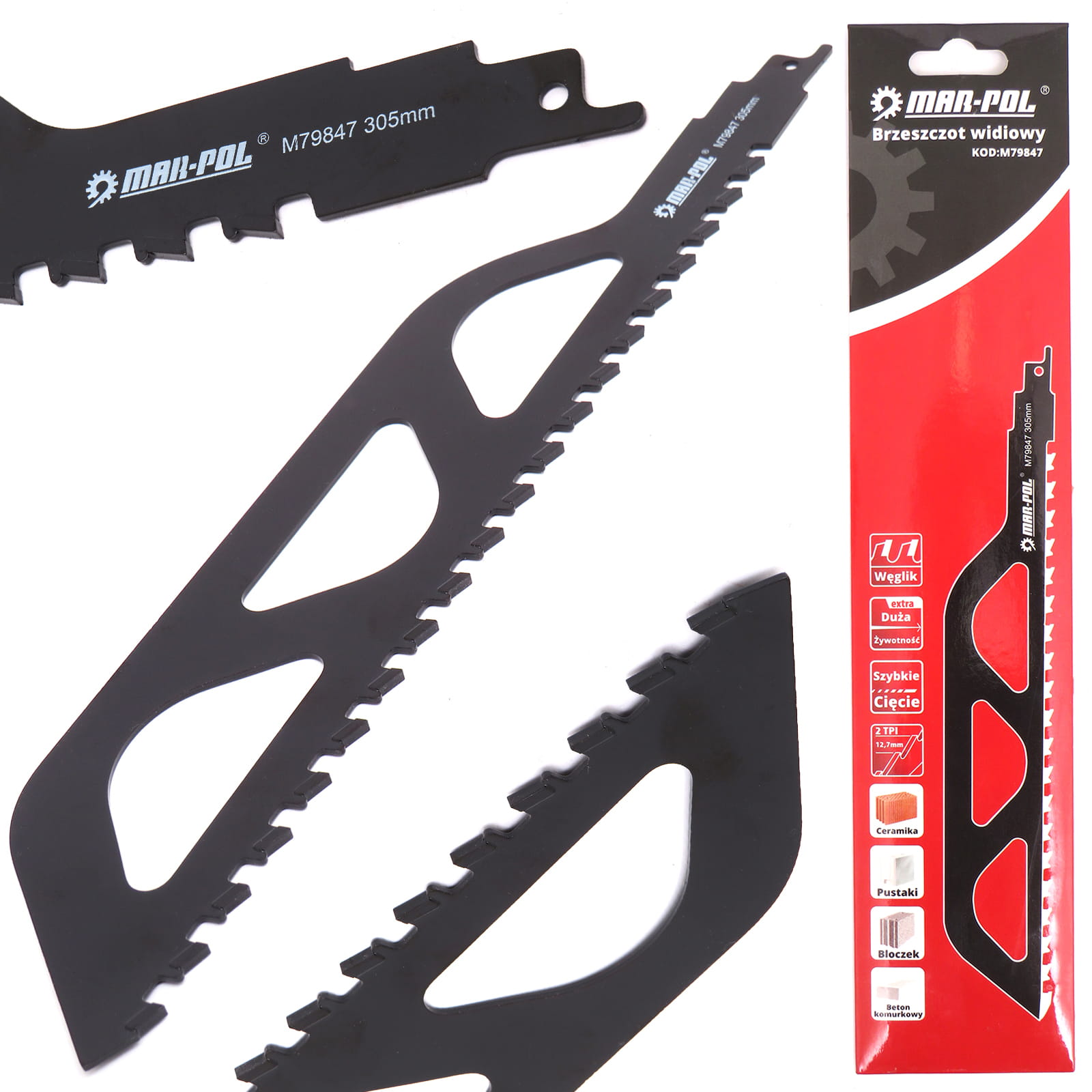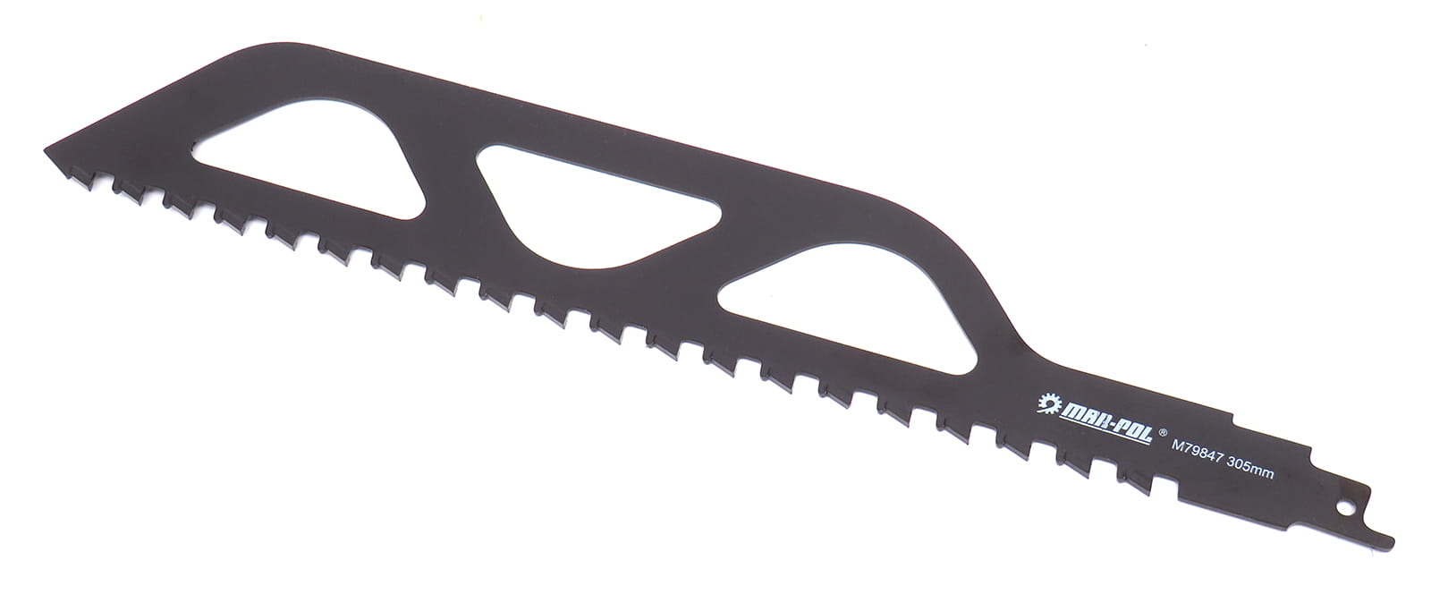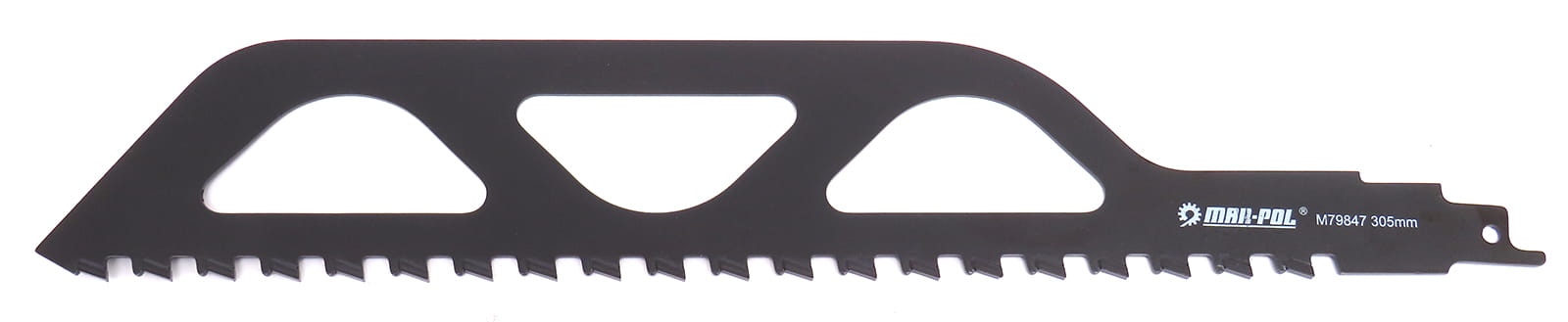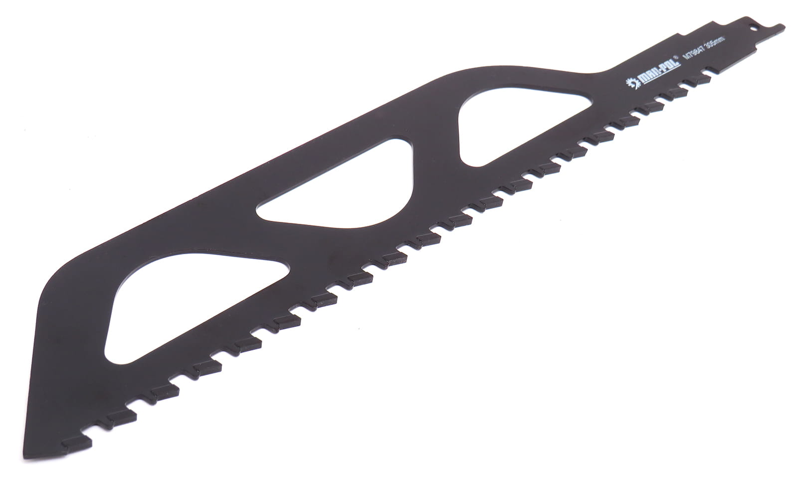 Brzeszczot do piły szablastej o zębach wykonanych z węglików spiekanych. Przeznaczony do cięcia betonu komórkowego, betonu, cegły i pustaków ceramicznych.