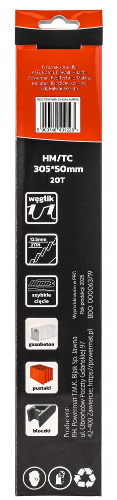 Dzięki długości roboczej 305 mm oraz geometrii uzębienia 20T, brzeszczot zapewnia szybkie i czyste cięcia, a przy tym doskonałą stabilność i trwałość.