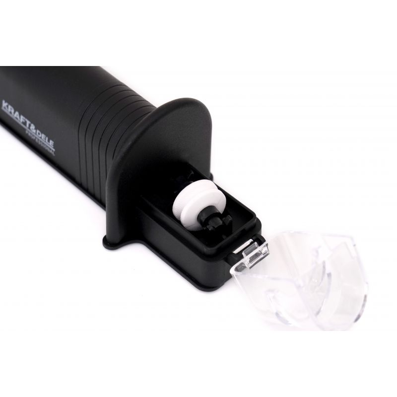 Ceramiczna ostrzałka do noży marki KRAFT&DELE to niezbędne akcesorium w każdej kuchni i nie tylko. Jej skuteczność i wysoka jakość wykonania gwarantuje zachowanie ostrości noży przed długi czas.