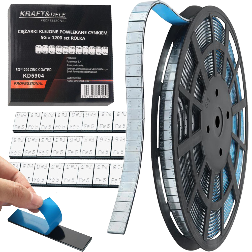 CIĘŻARKI KLEJONE 5g 1200szt EDGY SLIM OCYNKOWANE ROLKA DO FELG ALUMINIOWYCH