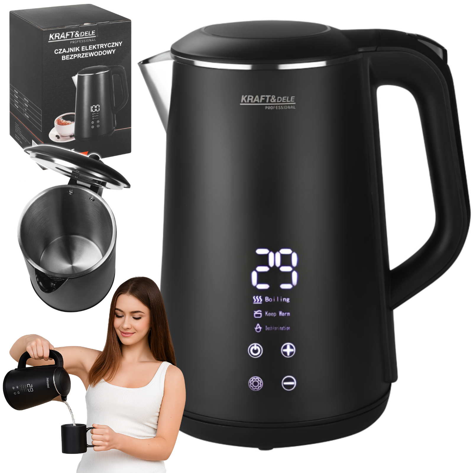 CZAJNIK ELEKTRYCZNY Z REGULACJĄ TEMPERATURY BEZPRZEWODOWY LED 1,6L 1500W