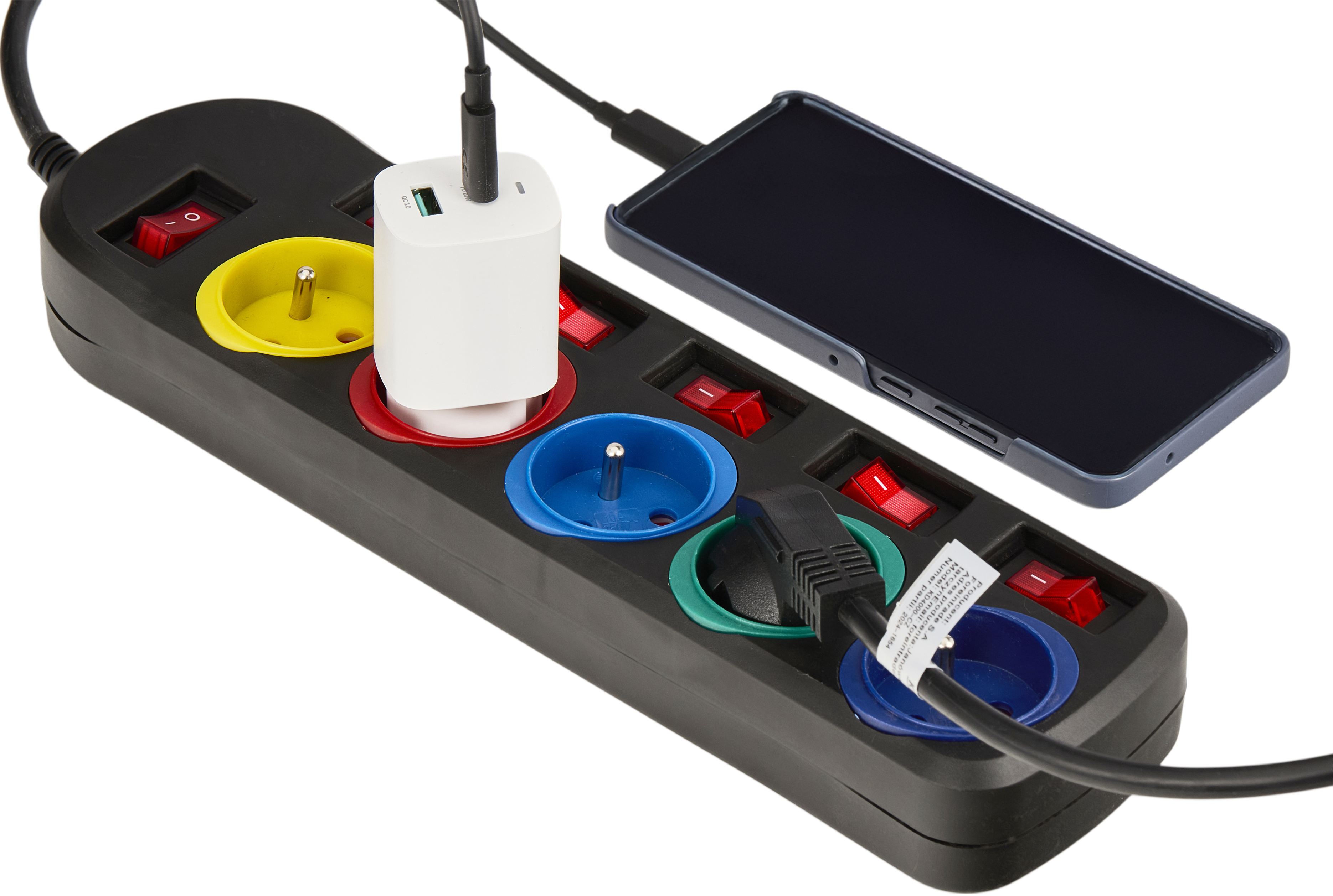- Wielofunkcyjność – 5 gniazd z uziemieniem umożliwia jednoczesne podłączenie kilku urządzeń