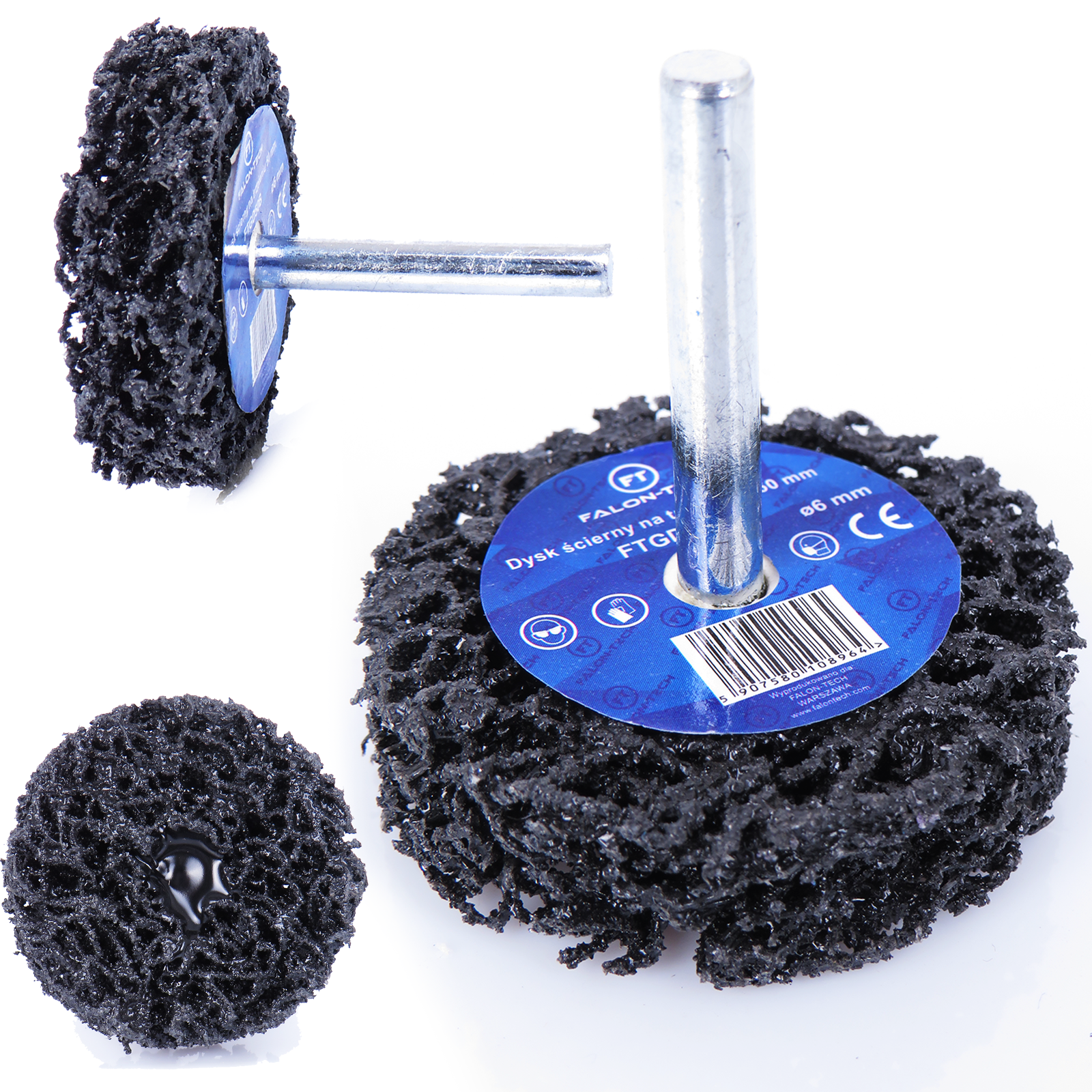 DYSK ŚCIERNY Z WŁÓKNINY NA TRZPIENIU 50MM WŁOSY MURZYNA