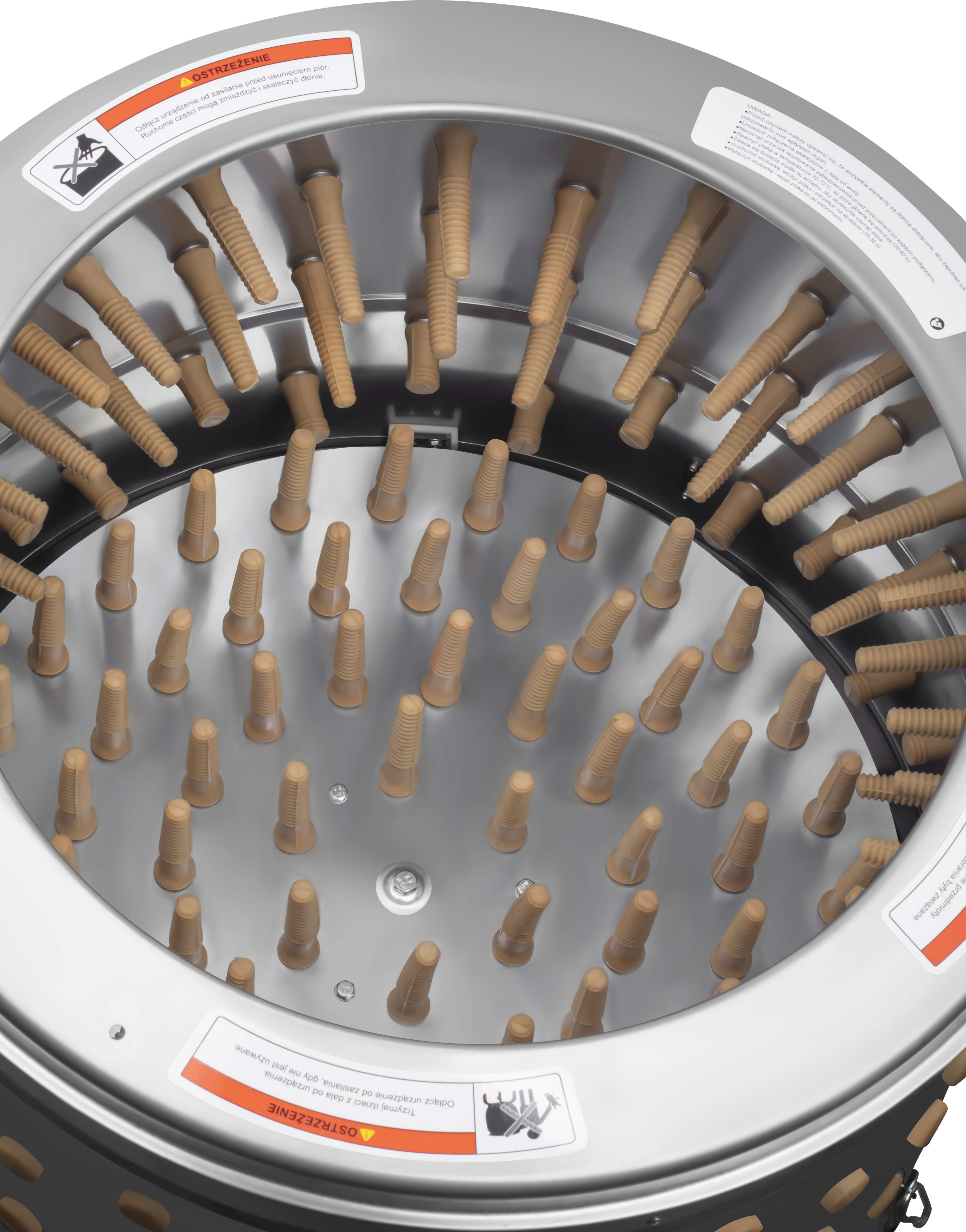 - Optymalna prędkość obrotowa – 330 obr/min zapewnia efektywność bez uszkadzania skóry drobiu