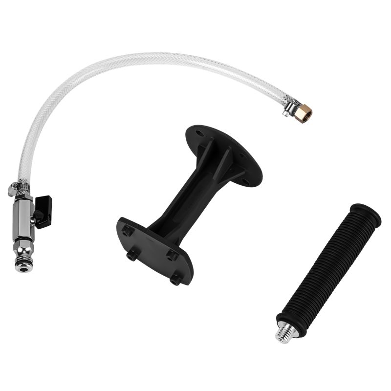 Dodatkowe akcesoria (rękojeść i podpórka) poprawiają stabilność i ergonomię pracy.