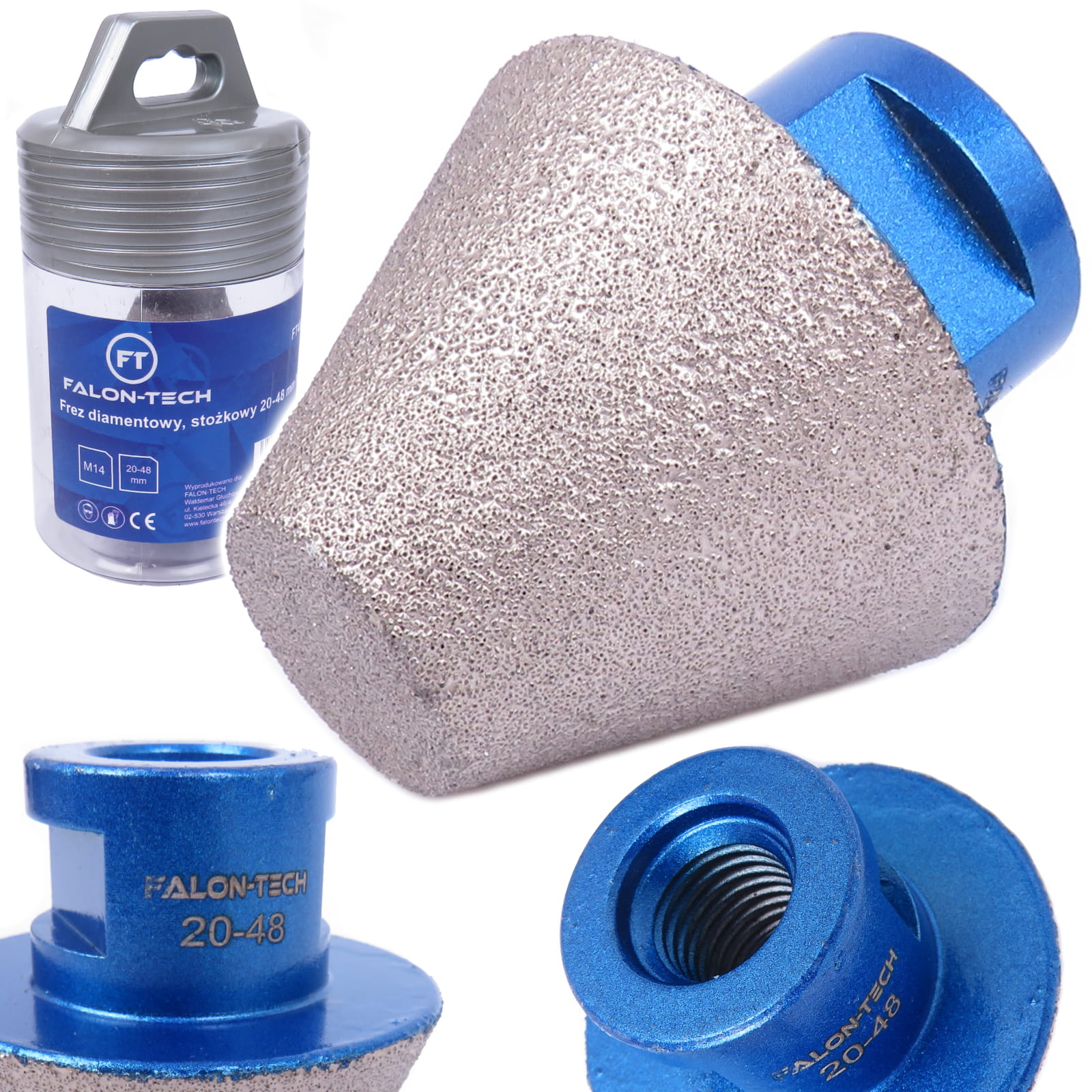 FREZ DIAMENTOWY STOŻKOWY M14 20-48 MM STOŻEK GWINT CERAMIKA KAMIEŃ