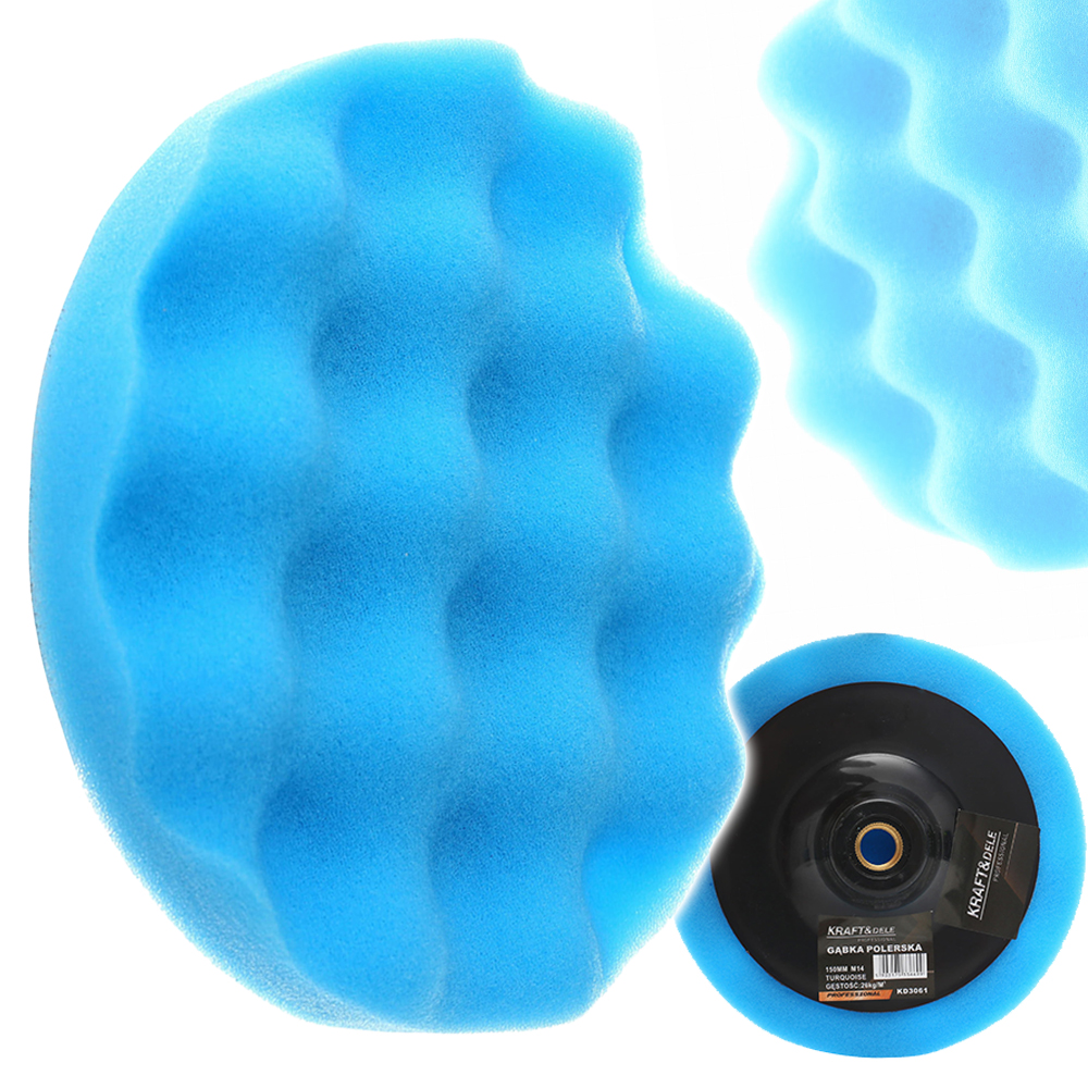 GĄBKA POLERSKA KARBOWANA 150mm GWINT M14 NIEBIESKA