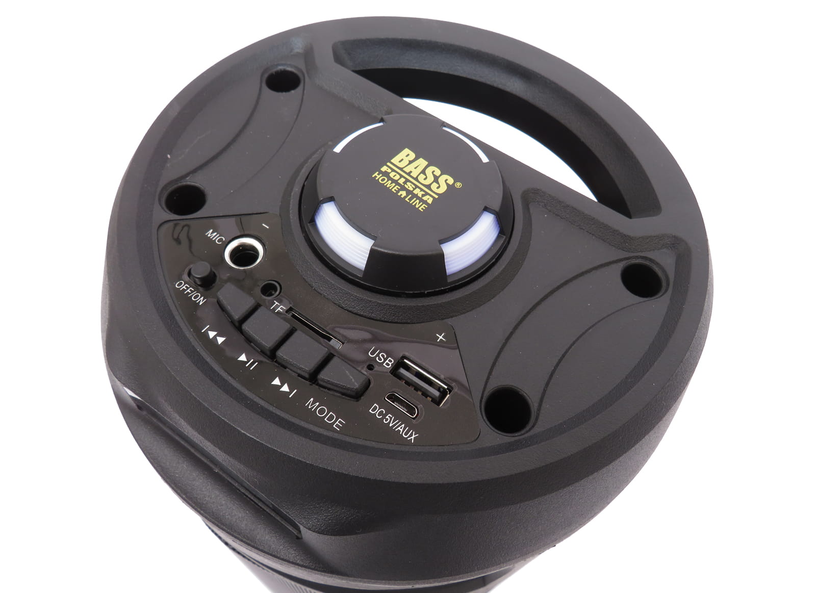 - Wejścia: TF Card, USB, AUX liniowe, wejście mikrofonowe