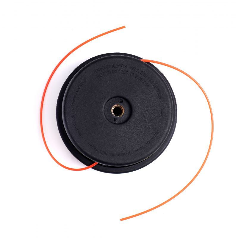 Głowica została zaprojektowana z myślą o szybkim i prostym montażu. Solidny gwint oraz precyzyjny system mocowania gwarantują stabilne osadzenie na wale kosy, eliminując ryzyko luzów w trakcie pracy. Długość żyłki (ok. 20 cm z każdej strony) zapewnia optymalny zasięg cięcia, a średnica 10 cm i maksymalna prędkość obrotowa do 10 000 obr./min umożliwiają efektywne koszenie większych powierzchni w krótkim czasie.