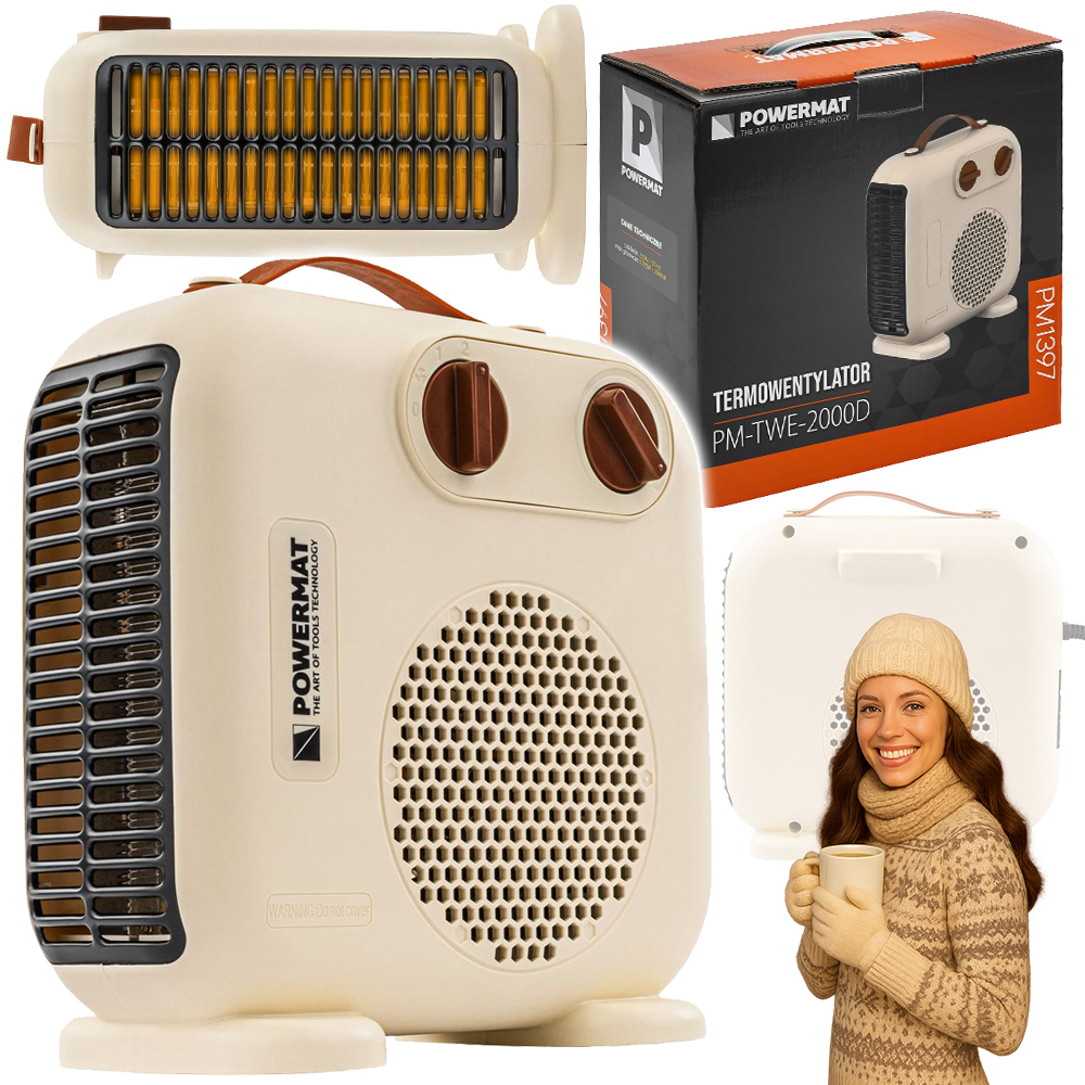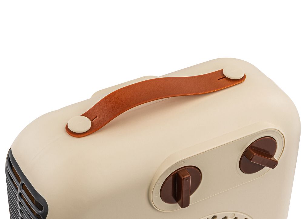 Termowentylator wyróżnia się prostą i intuicyjną obsługą – dwa pokrętła umożliwiają łatwą regulację mocy oraz temperatury. Niewielkie wymiary i waga wynosząca zaledwie 1 kg sprawiają, że urządzenie jest wyjątkowo mobilne i można je bez wysiłku przenosić pomiędzy pomieszczeniami. Ergonomiczny uchwyt transportowy zapewnia wygodne i bezpieczne przenoszenie, a kompaktowa forma pozwala na wygodne przechowywanie, nawet w ograniczonej przestrzeni.