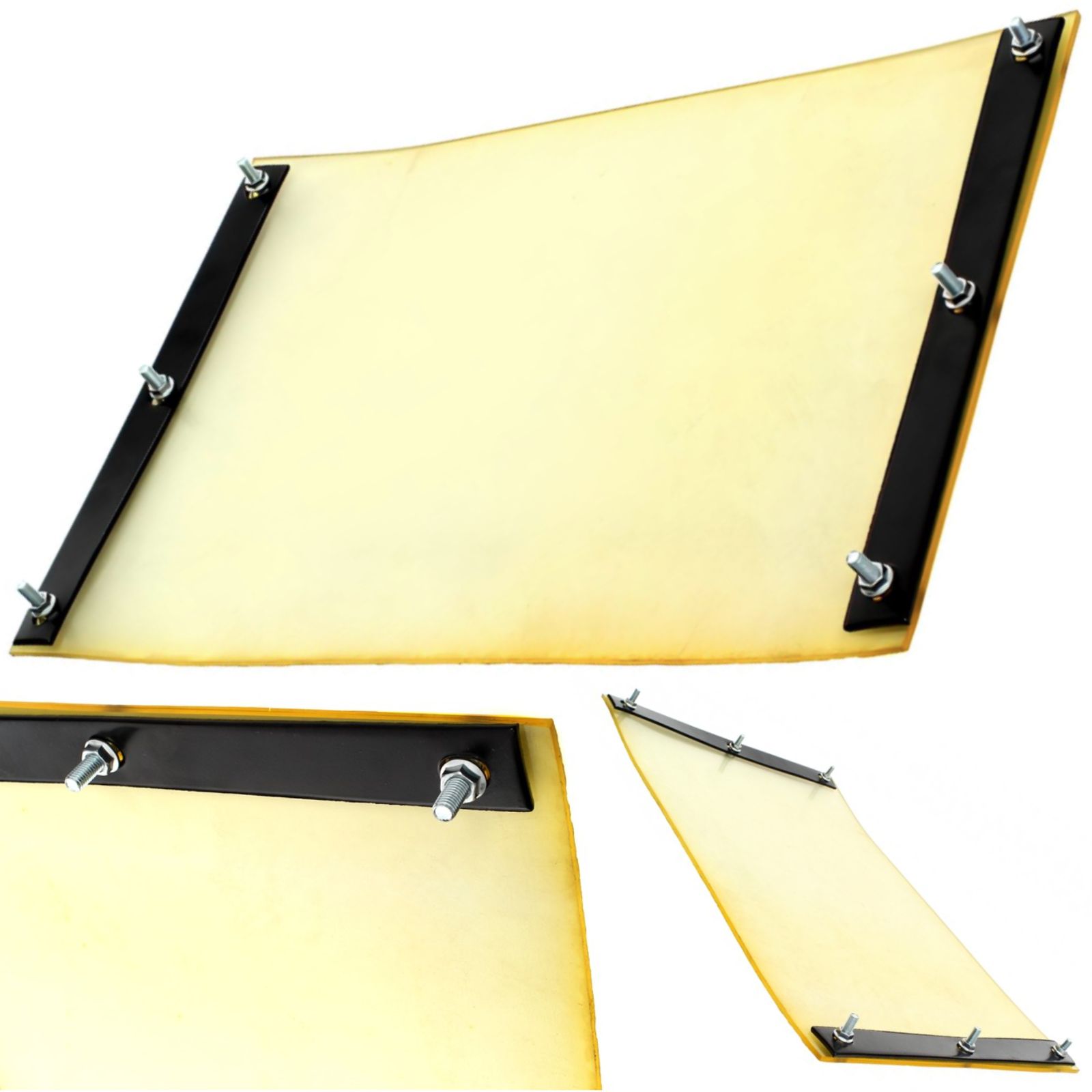 Element ochronny został wykonany z solidnego materiału o zwiększonej odporności na rozciąganie, pękanie i odkształcenia. Odpowiednia grubość zapewnia skuteczną amortyzację drgań oraz ochronę przed nadmiernym naciskiem płyty zagęszczarki. Dzięki precyzyjnemu dopasowaniu guma zachowuje stabilność podczas pracy.