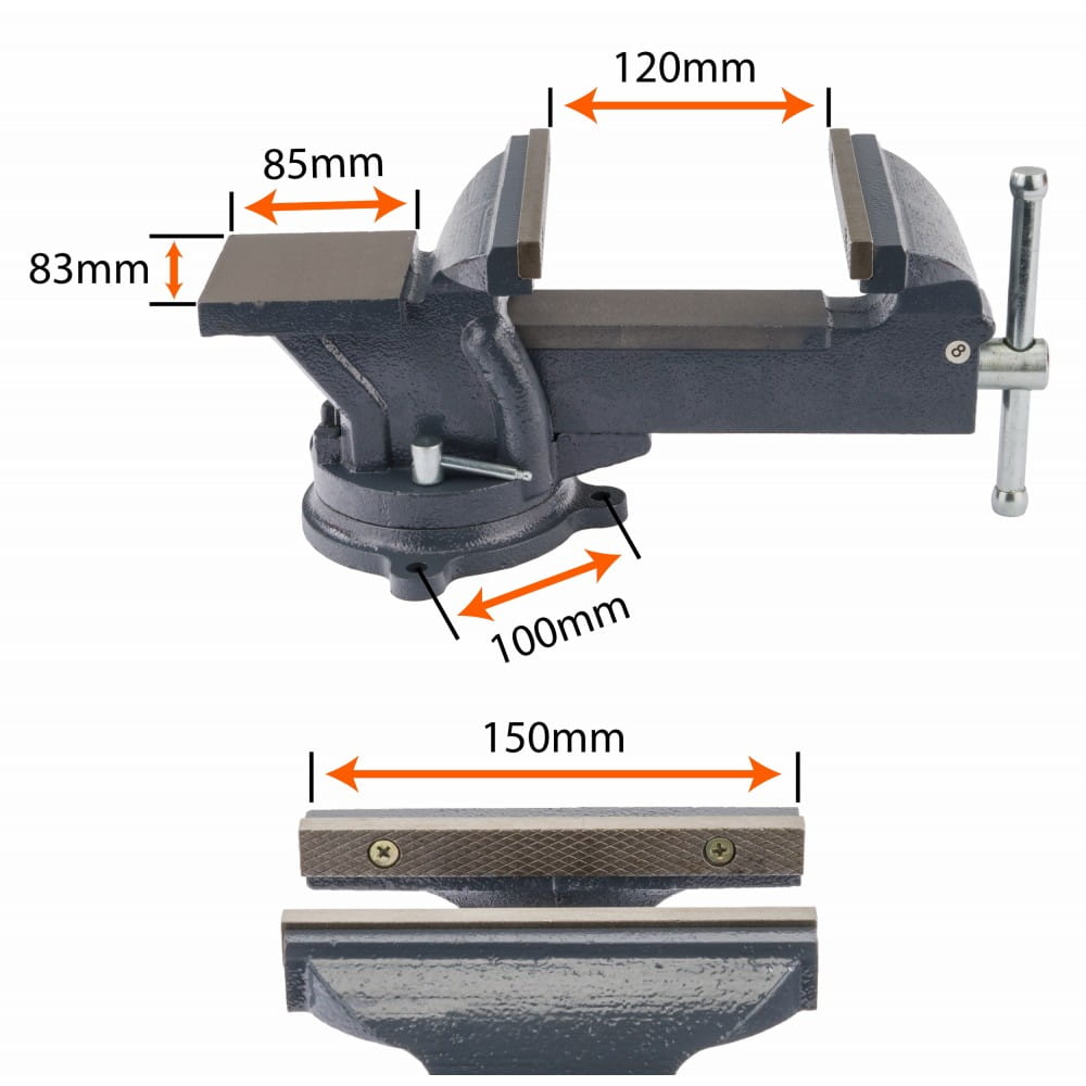 - Wysokość imadła: 150 mm