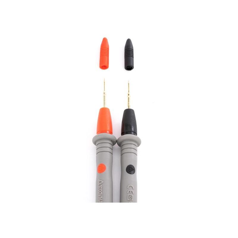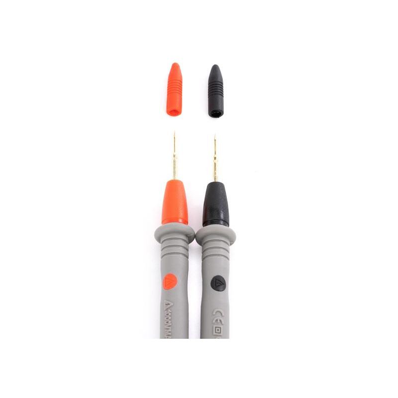 - Precyzyjne sondy pomiarowe – ostro zakończone igły o długości 20 mm pozwalają na dokładny pomiar nawet bardzo małych elementów elektronicznych.