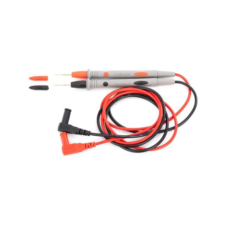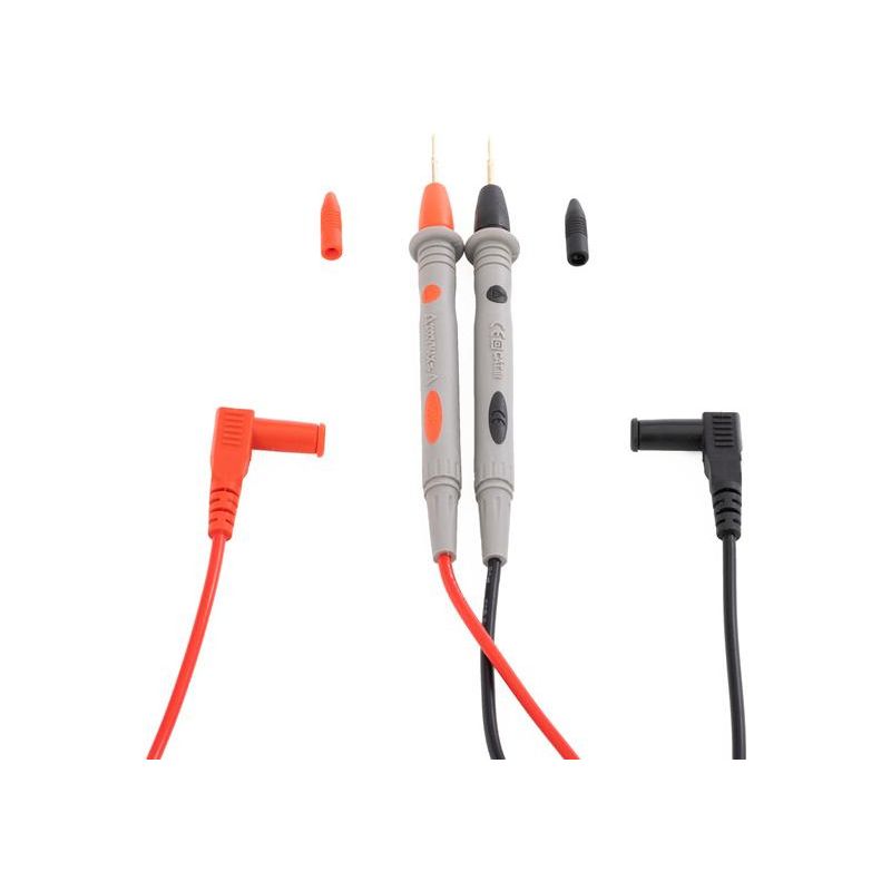 Zastosowanie elastycznego przewodu o długości całkowitej 108 cm zapewnia swobodę ruchu podczas pomiarów, jednocześnie zapobiegając splątaniu. W pełni izolowane uchwyty gwarantują pewny i bezpieczny chwyt, nawet podczas długotrwałej pracy. Sondy zakończone ostrymi igłami umożliwiają precyzyjne dotarcie do trudno dostępnych punktów pomiarowych.