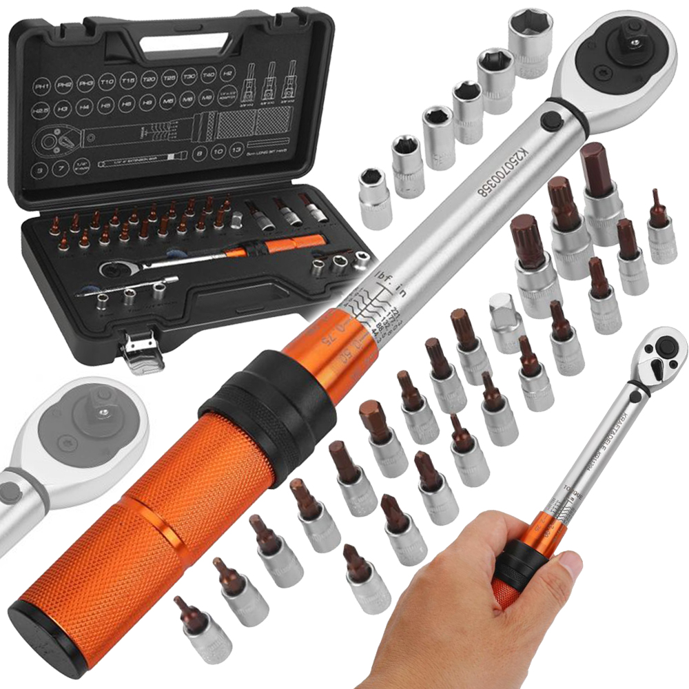 KLUCZ DYNAMOMETRYCZNY 1/4" 5–25Nm BITY NASADKI ADAPTER ZESTAW WALIZKA 32el.