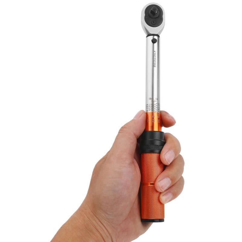 Mechanizm klucza umożliwia ustawienie momentu obrotowego w zakresie 5–25 Nm, co pozwala na dokładne dopasowanie siły dokręcania do specyfikacji danego elementu. Po osiągnięciu ustawionej wartości klucz wydaje charakterystyczne kliknięcie, sygnalizując zakończenie pracy. Takie rozwiązanie chroni gwinty, elementy złączne i powierzchnie przed uszkodzeniem, zapewniając bezpieczeństwo użytkowania.