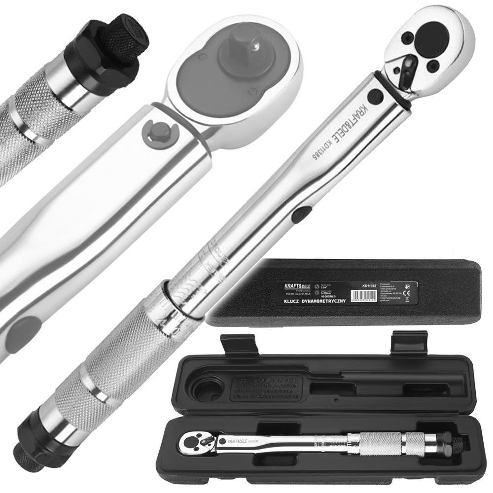 Klucz dynamometryczny to precyzyjne narzędzie przeznaczone do kontrolowanego dokręcania śrub i nakrętek z określonym momentem obrotowym. Solidna stalowa konstrukcja zapewnia trwałość i niezawodność, dzięki czemu narzędzie sprawdza się zarówno w warsztatach samochodowych, serwisach, jak i podczas prac wykonywanych w domowych warunkach.
