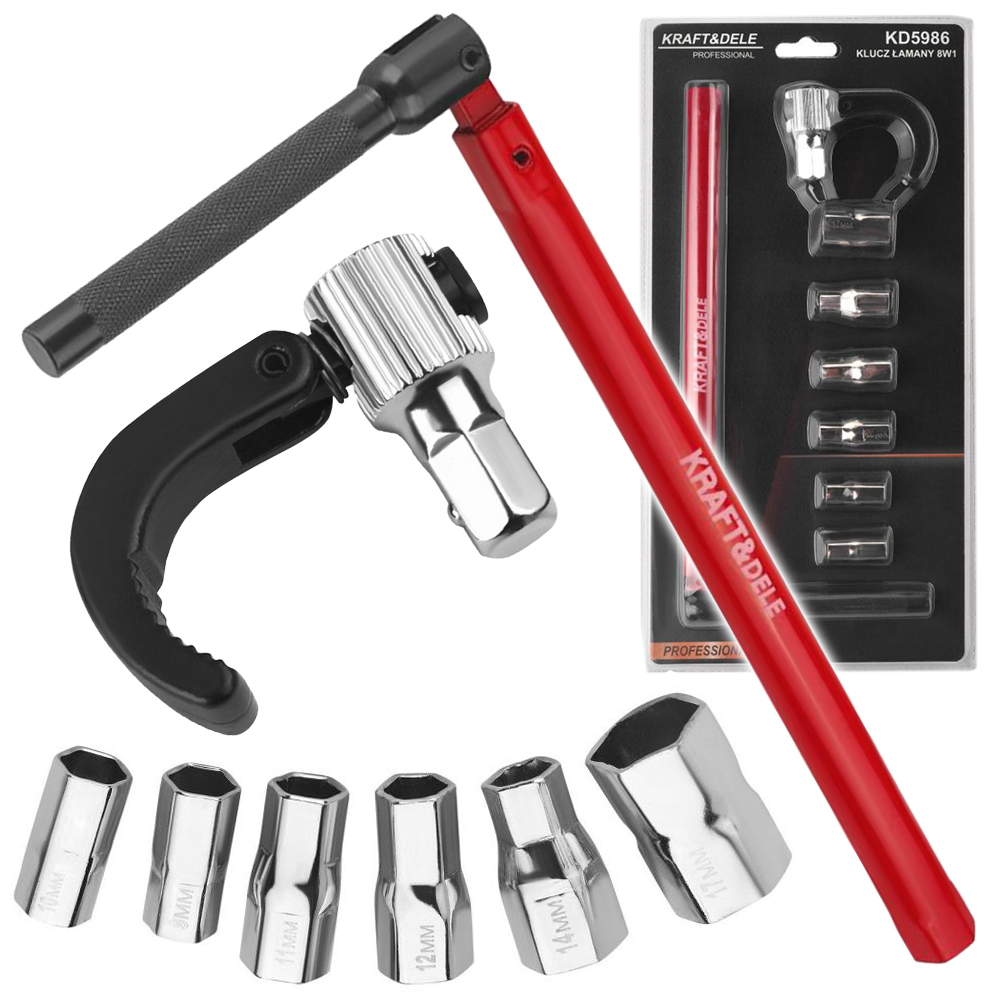 KLUCZ ŁAMANY DO INSTALACJI ARMATURY + NASADKI 9-17mm GŁOWICA 8w1