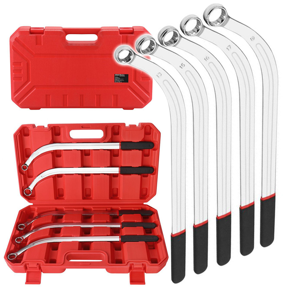 12-kątna konstrukcja końcówek pozwala na dokładne dopasowanie do elementów złącznych, co przekłada się na lepszą kontrolę momentu dokręcania i minimalizuje ryzyko uszkodzenia śrub. Odpowiednia długość kluczy ułatwia uzyskanie wymaganej siły bez nadmiernego wysiłku.
