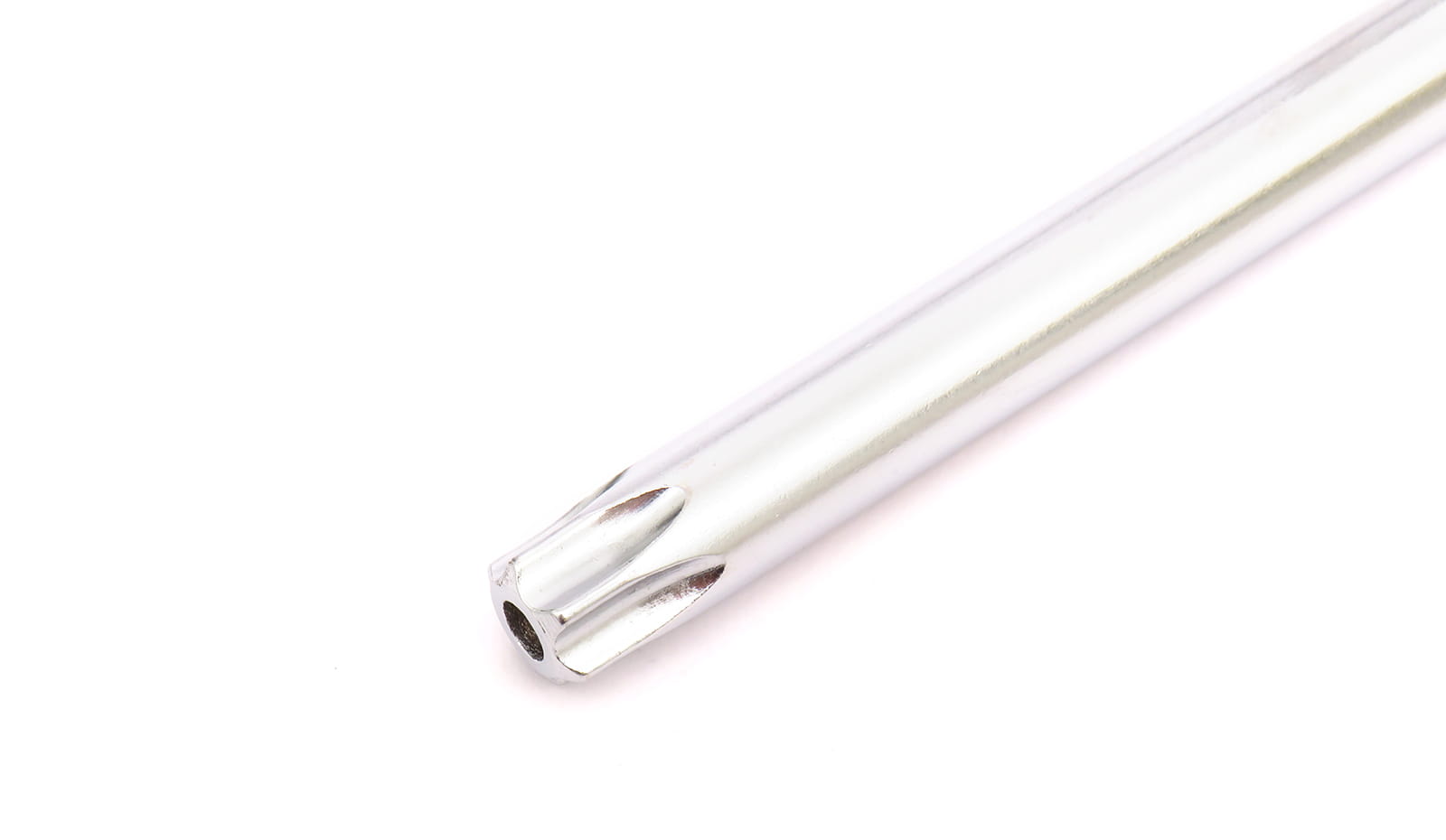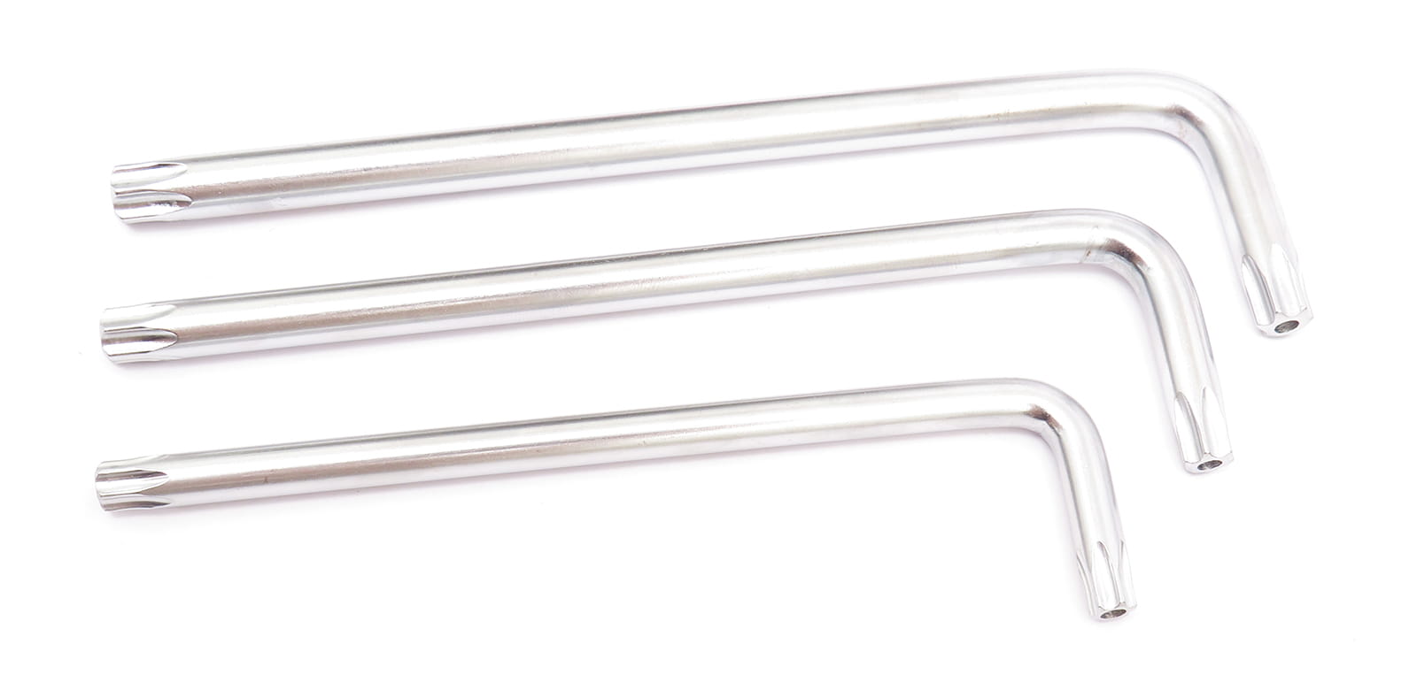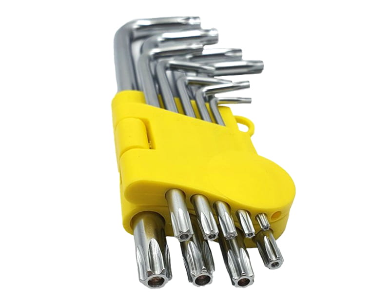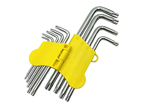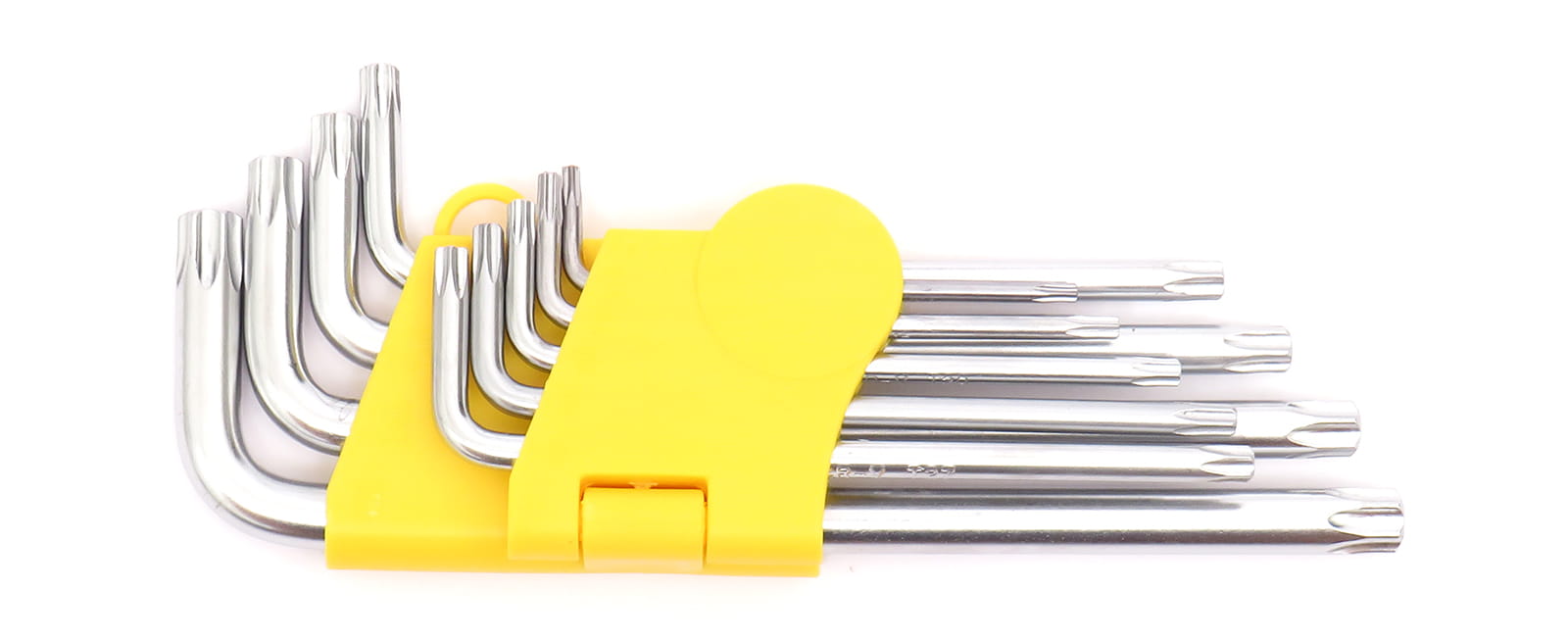 Zestaw kluczy Torx, wykonanych ze stali chromowo-wanadowej, która znacząco wpływa na wytrzymałość narzędzi.