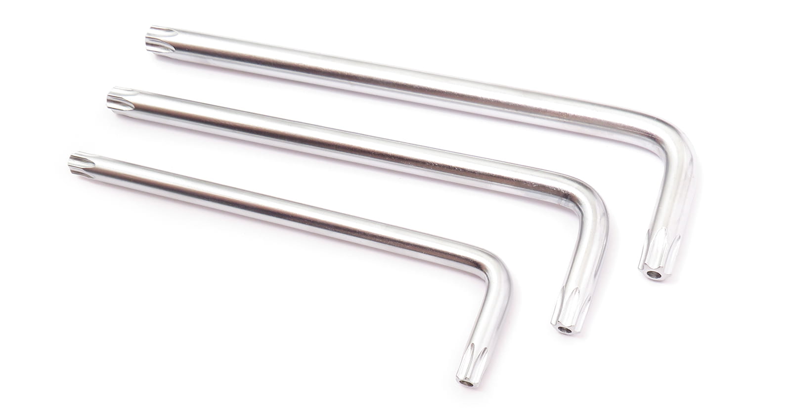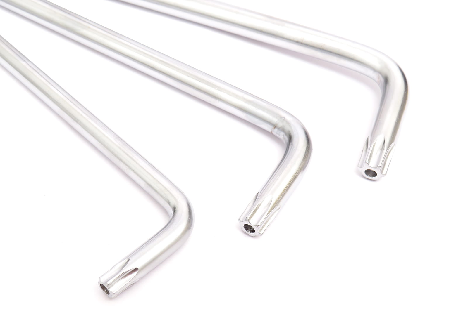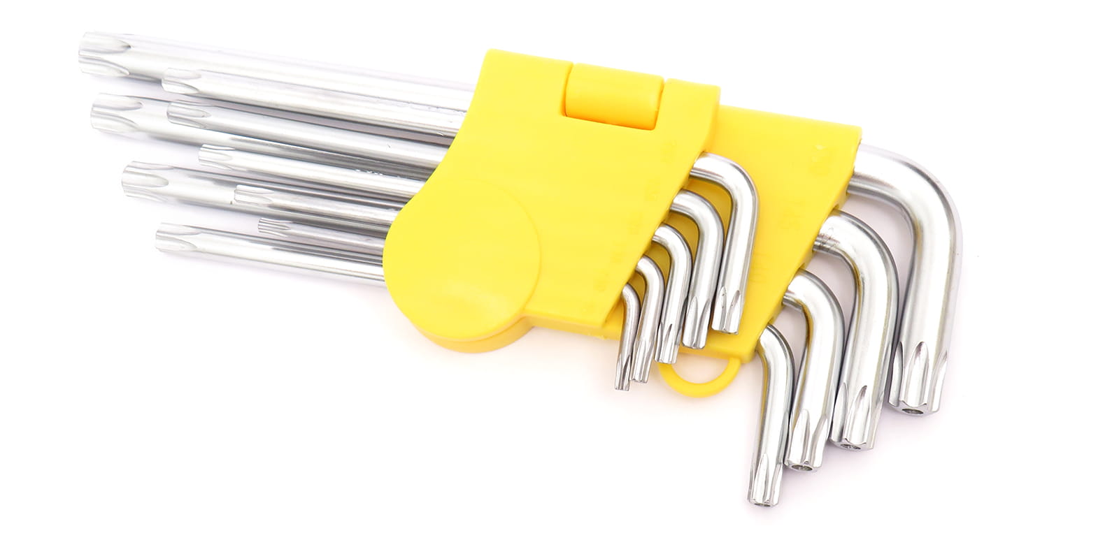 Zestaw kluczy Torx, wykonanych ze stali chromowo-wanadowej, która znacząco wpływa na wytrzymałość narzędzi.