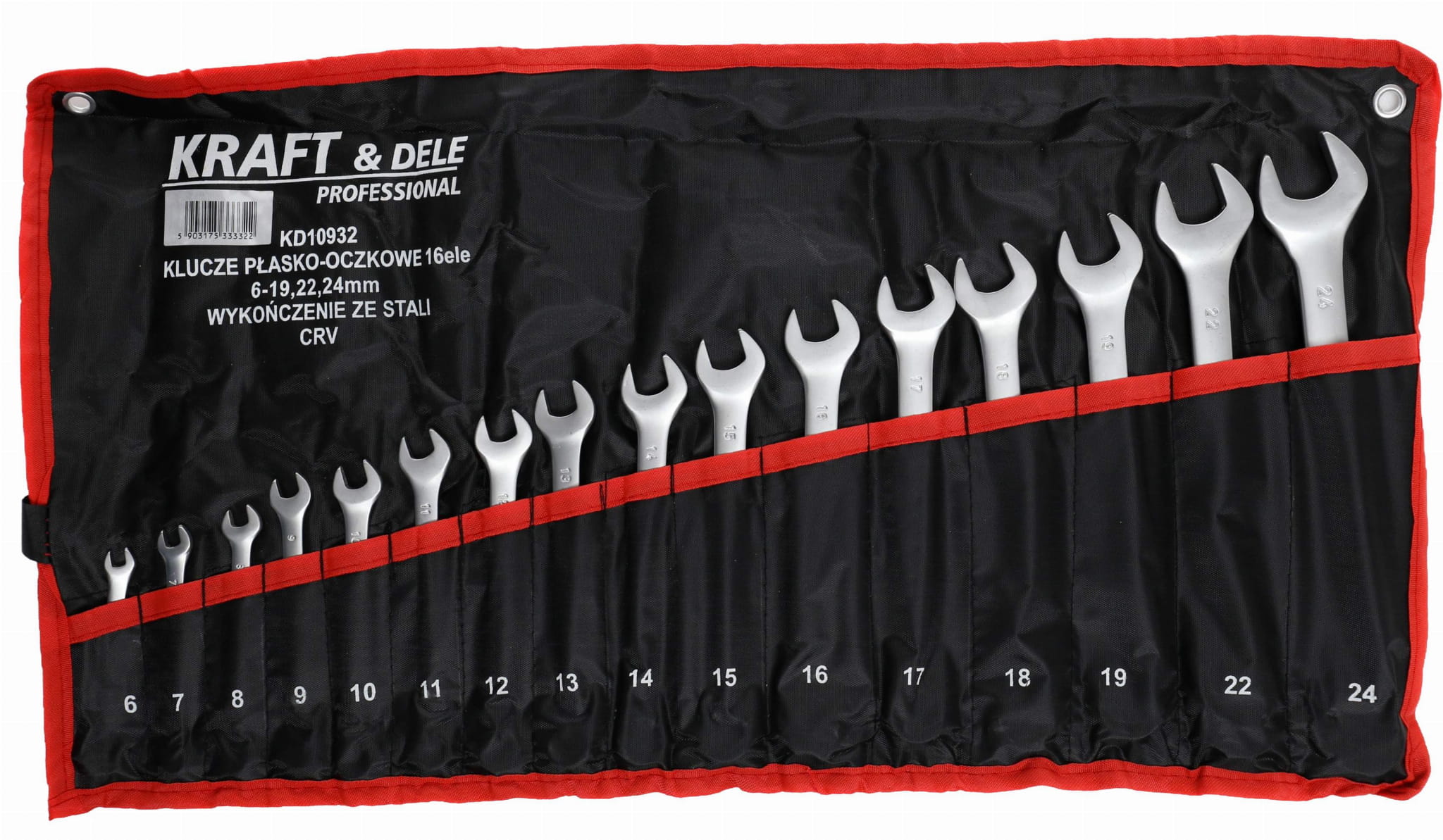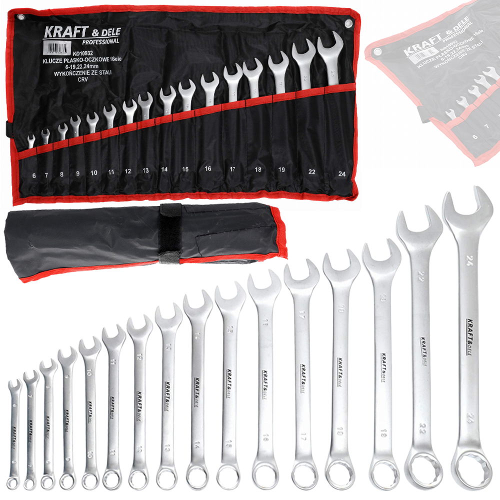 KLUCZE PŁASKO-OCZKOWE 16 ELEMENTÓW PŁASKIE OCZKOWE 6-24mm CRV ETUI