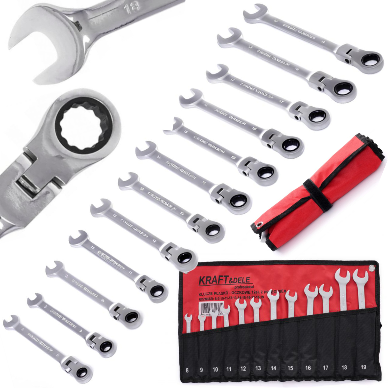 Klucz płasko – oczkowy może z powodzeniem zastąpić profesjonalną grzechotkę szybkomocującą, a zarazem ma znacznie mniejsze rozmiary co pozwala na dostęp do ciasnych miejsc. Ponadto mocny mechanizm zębatkowy wykonany ze stali, pozwalający na niewielki, tylko 5° skok klucza (zwykły klucz wymaga 30° skoku, lub 6 razy większej powierzchni) sprawia, że prezentowany zestaw staję się idealnym partnerem każdego mechanika.