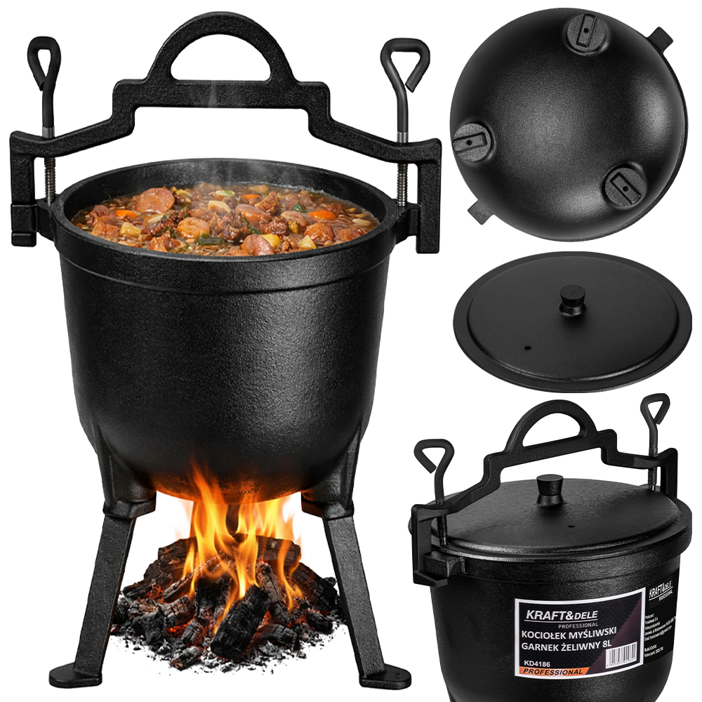 KOCIOŁEK MYŚLIWSKI GARNEK ŻELIWNY 8L NA OGNISKO GRILL BIWAK