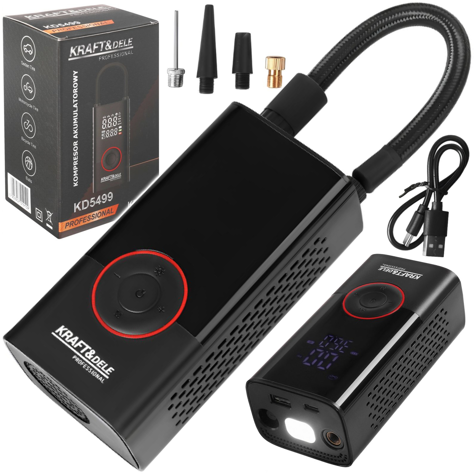 KOMPRESOR AKUMULATOROWY SAMOCHODOWY POMPKA + LATARKA 85W 4000mAh LCD USB-C