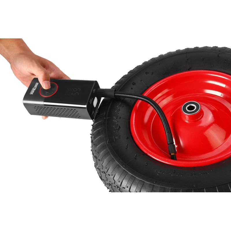 Obudowa kompresora została wykonana z trwałych materiałów odpornych na uszkodzenia mechaniczne i intensywne użytkowanie. Ergonomiczny kształt obudowy zapewnia pewny chwyt, a czytelny wyświetlacz LCD umożliwia intuicyjną obsługę nawet w ciemności. Niska waga i kompaktowe wymiary sprawiają, że urządzenie można z łatwością przechowywać w schowku samochodowym lub plecaku.