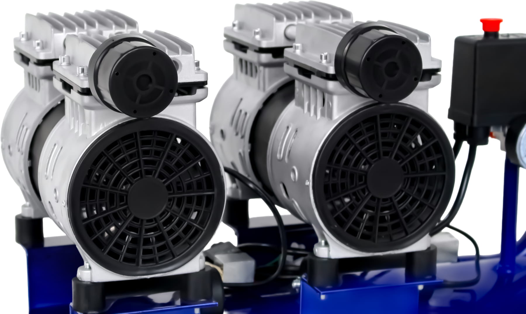 - Podwójny silnik 2 x 1500 W – Gwarantuje wysoką moc całkowitą 3000 W, odpowiednią do zasilania wymagających narzędzi pneumatycznych.