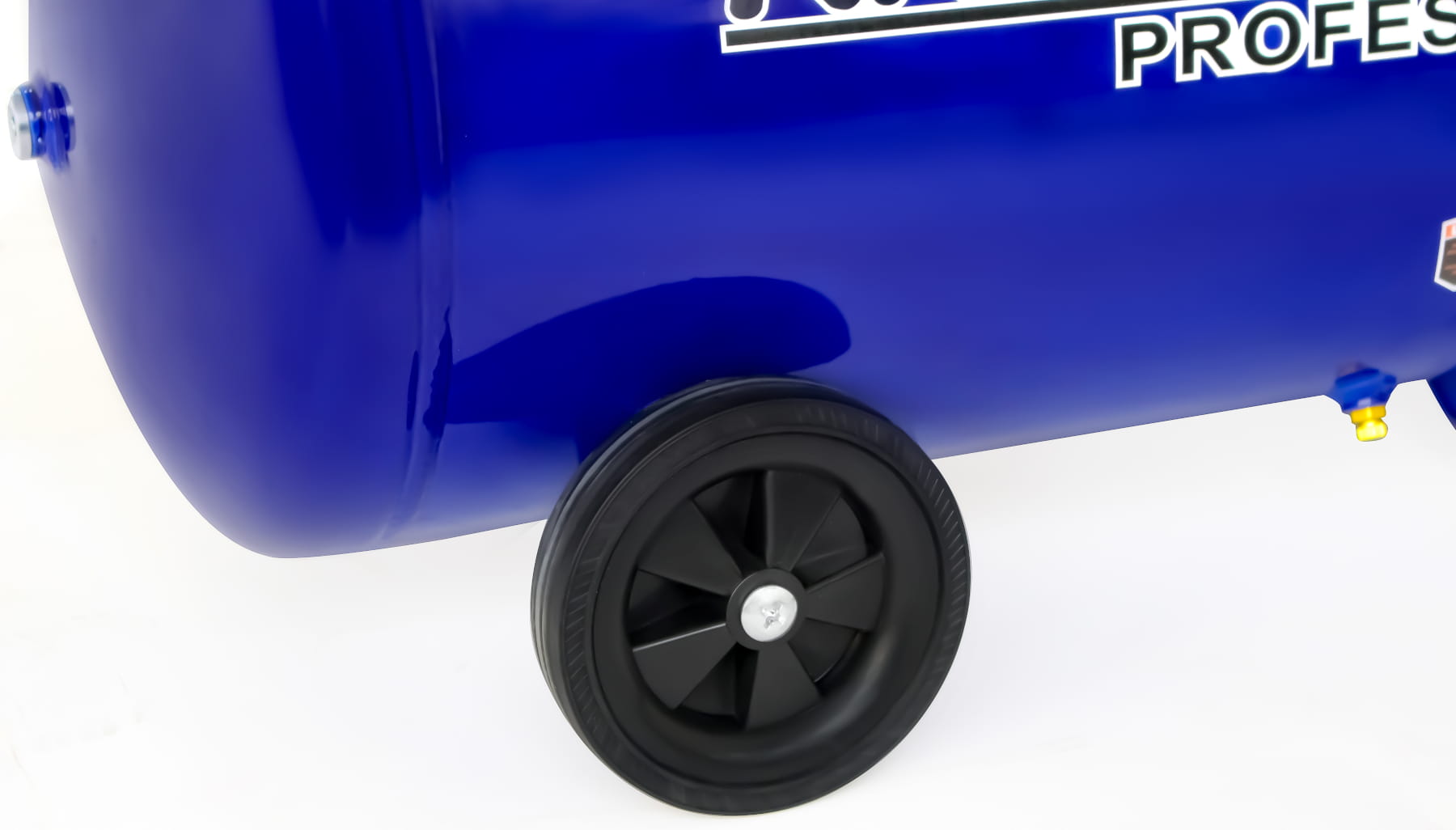 - Duża pojemność zbiornika 100 L – Zapewnia stabilne utrzymanie ciśnienia i umożliwia dłuższą pracę bez częstego załączania silnika.