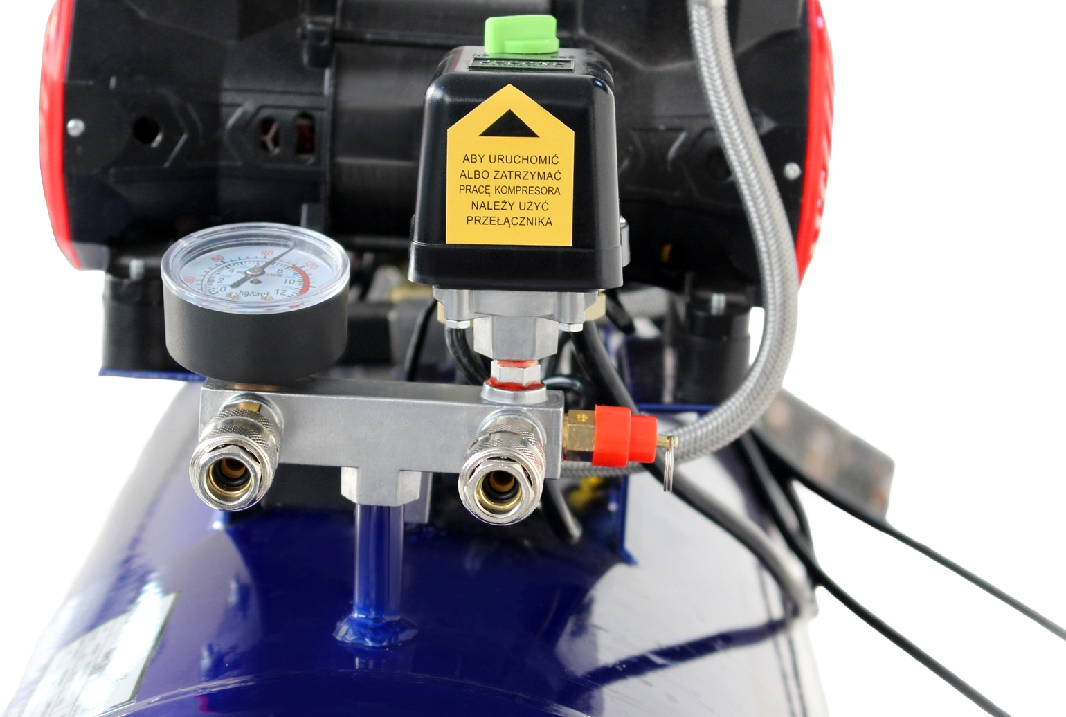 Duży zbiornik powietrza – pojemność 100 l sprzyja stabilnej pracy i ogranicza częste załączanie sprężarki