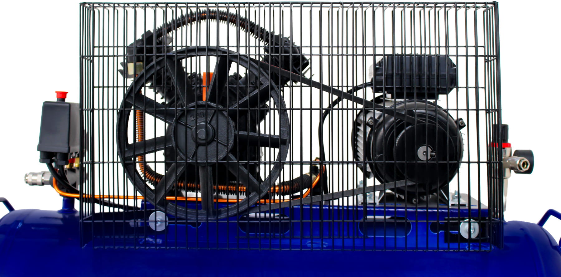 Kompresor został zaprojektowany z myślą o trwałości i bezpieczeństwie użytkowania. Głowica cylindra wykonana z wysokiej klasy stopu żelaza (FC-25), solidny wał korbowy oraz precyzyjne mocowania wpływają na długą żywotność urządzenia. Stabilny zbiornik powietrza oraz konstrukcja ograniczająca drgania poprawiają komfort pracy, a solidne koła transportowe ułatwiają przemieszczanie kompresora w miejscu pracy.