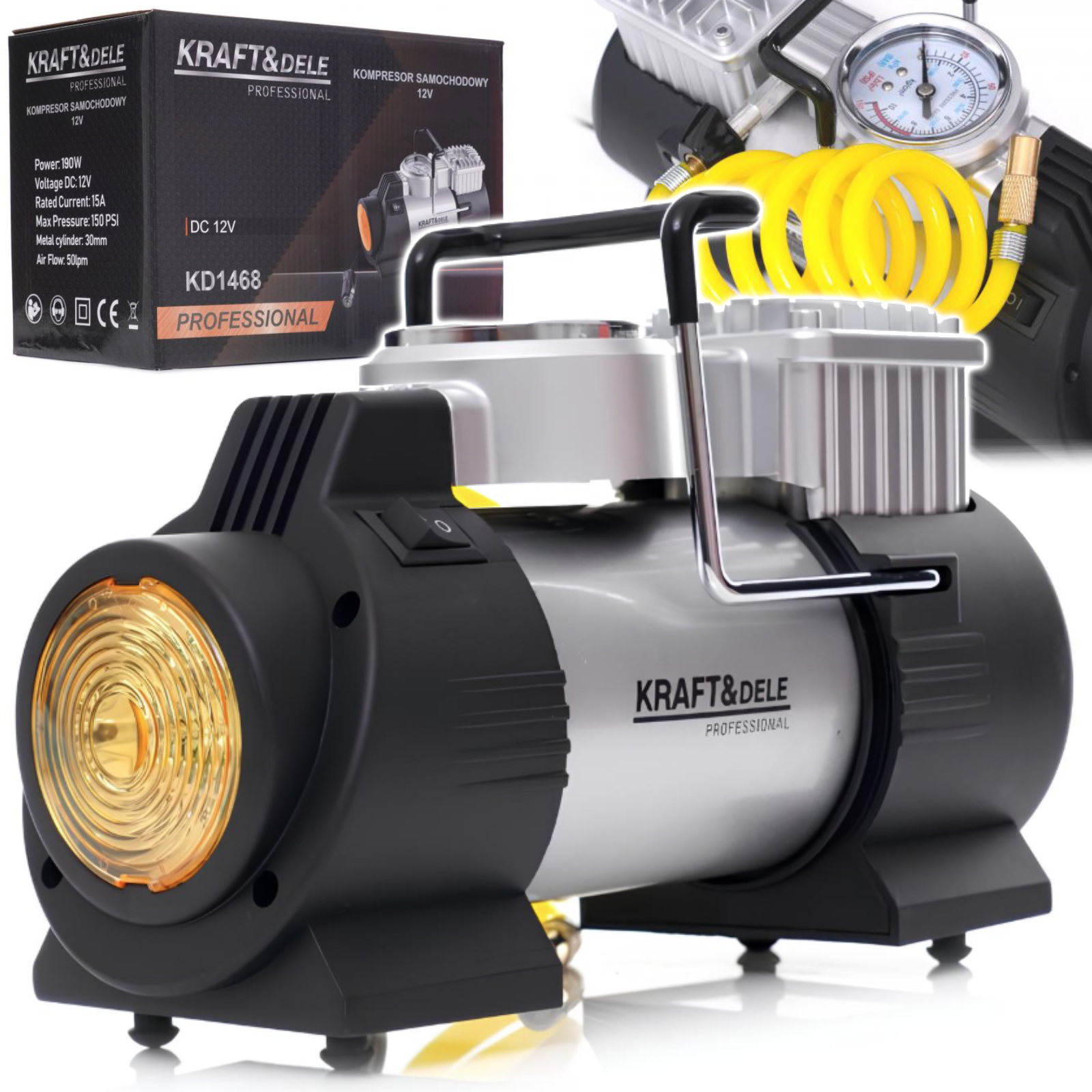 KOMPRESOR SAMOCHODOWY ZAPALNICZKA 12V 190W SPRĘŻARKA 150PSI ETUI KOŃCÓWKI