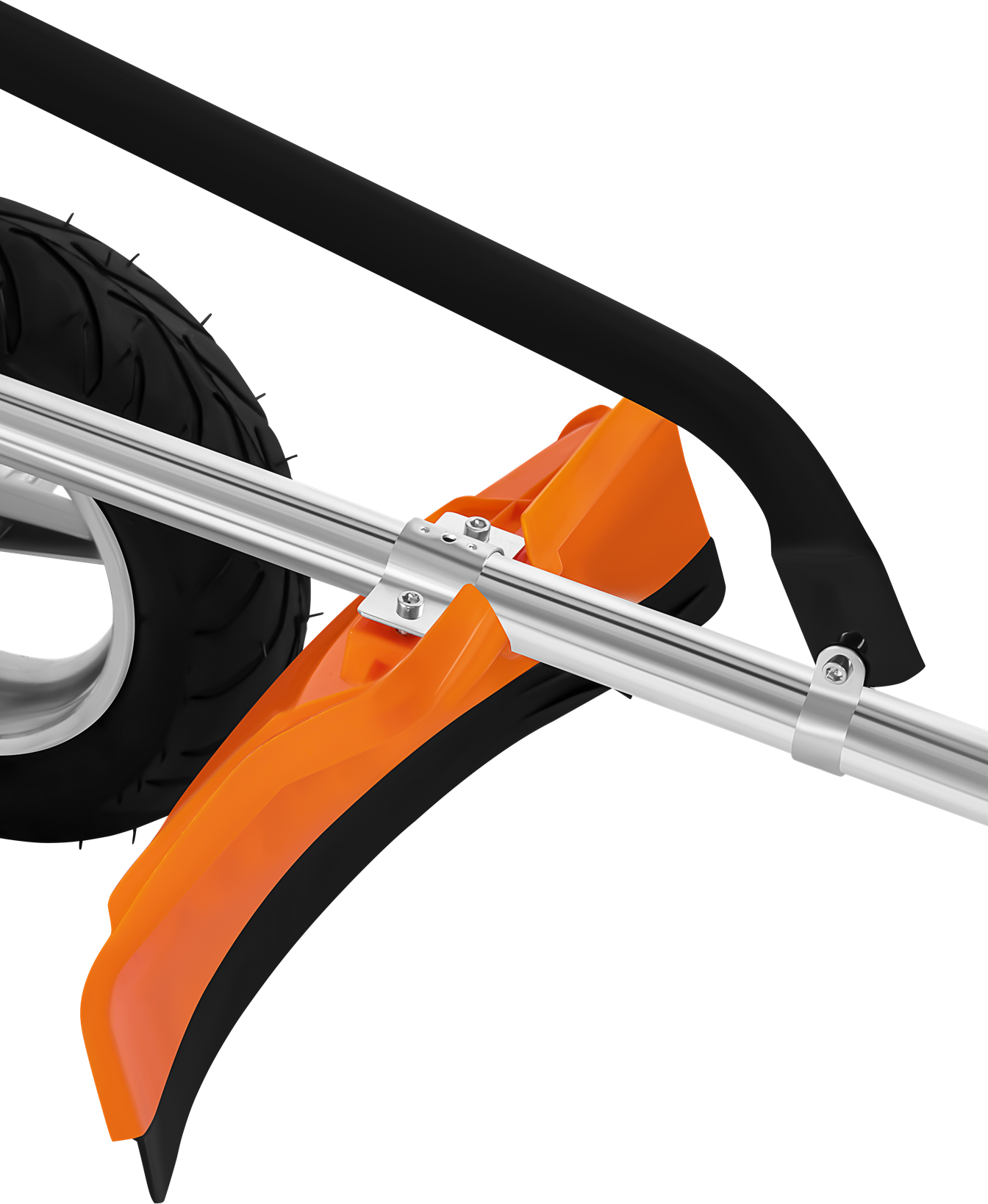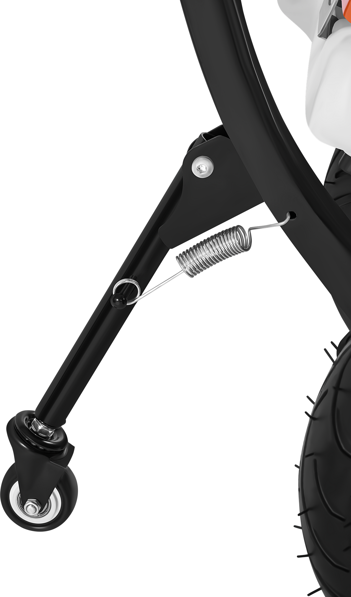 Lekka rama wykonana z aluminium w połączeniu z solidnymi kołami zapewnia trwałość oraz dobrą manewrowość. Składany i regulowany uchwyt zwiększa komfort pracy oraz ułatwia transport i przechowywanie. Dodatkowe koło na sprężynie wspomaga powrót urządzenia do pozycji roboczej.