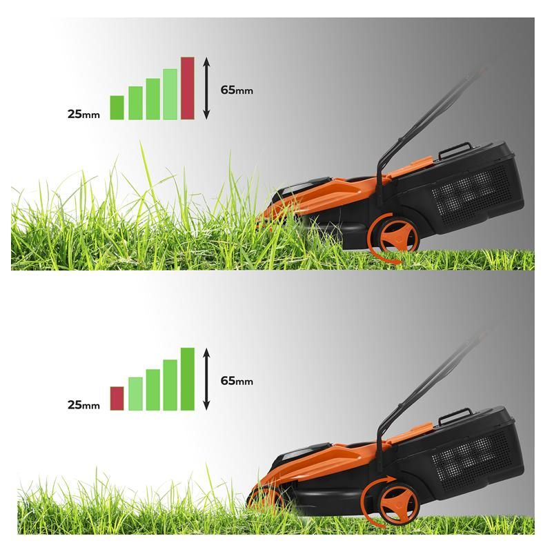- Regulacja wysokości koszenia: 25 – 65 mm