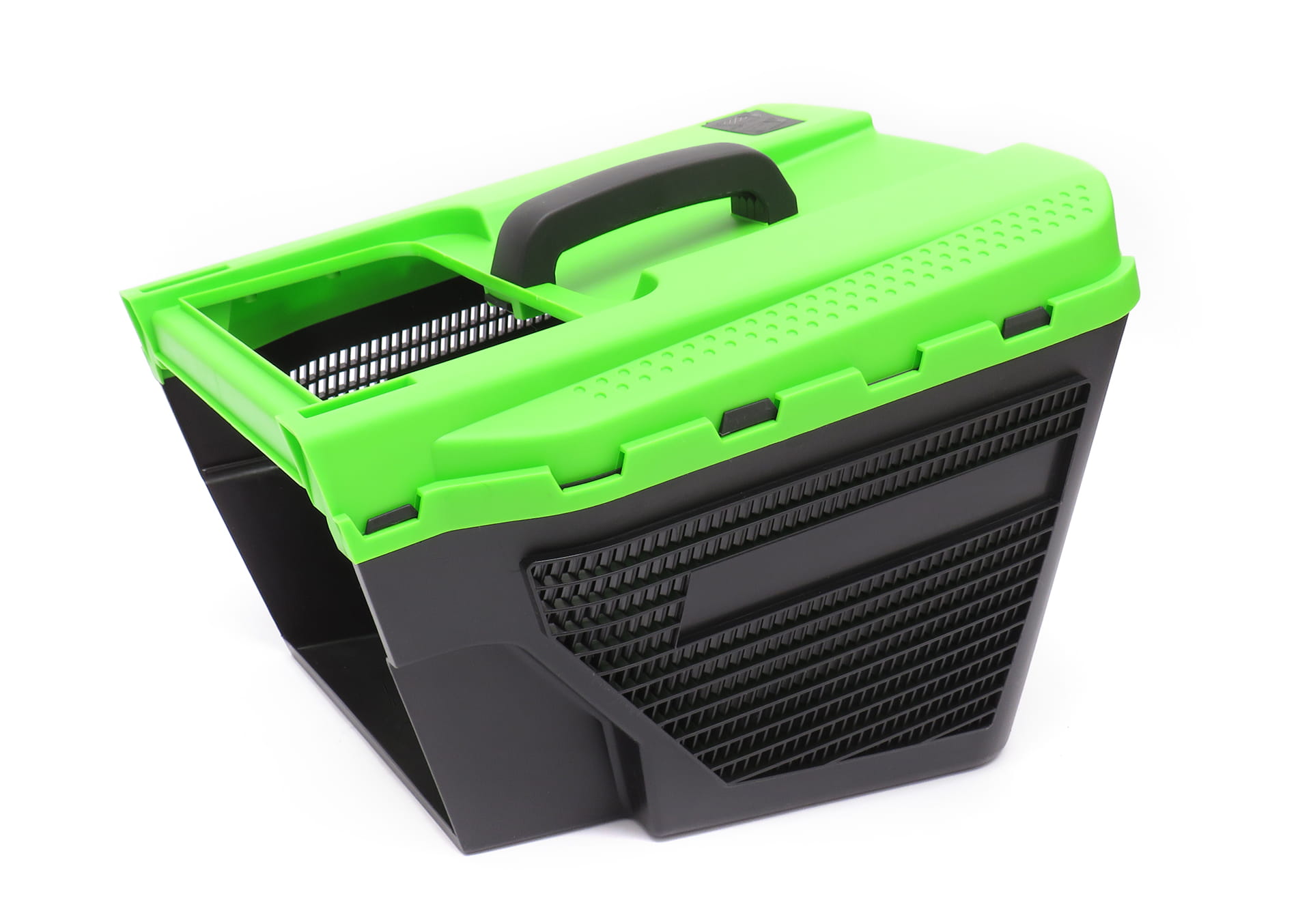 Urządzenie zostało wyposażone w pojemny 30 litrowy kosz na ścięta trawę. Konstrukcja kosza została przez nas dokładnie przemyślana, stworzony z tworzywa sztucznego, z uchwytem do przenoszenia.