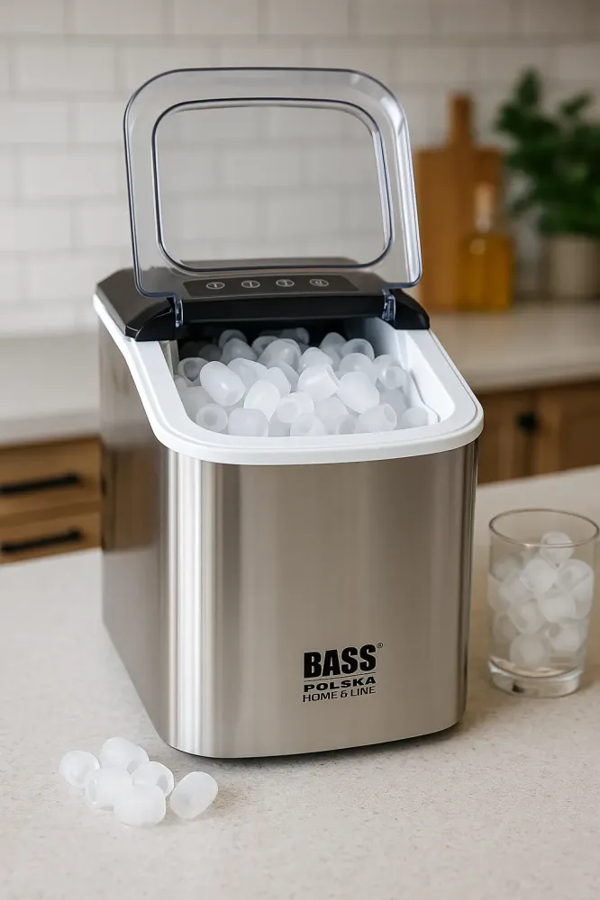 - Wysoka wydajność: do 12 kg lodu na dobę – idealne rozwiązanie na gorące dni i domowe imprezy.