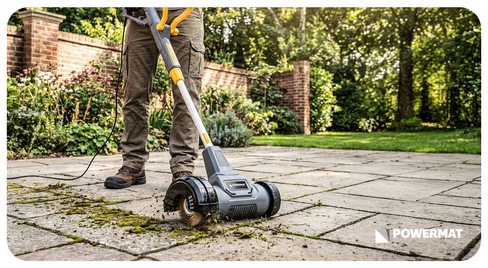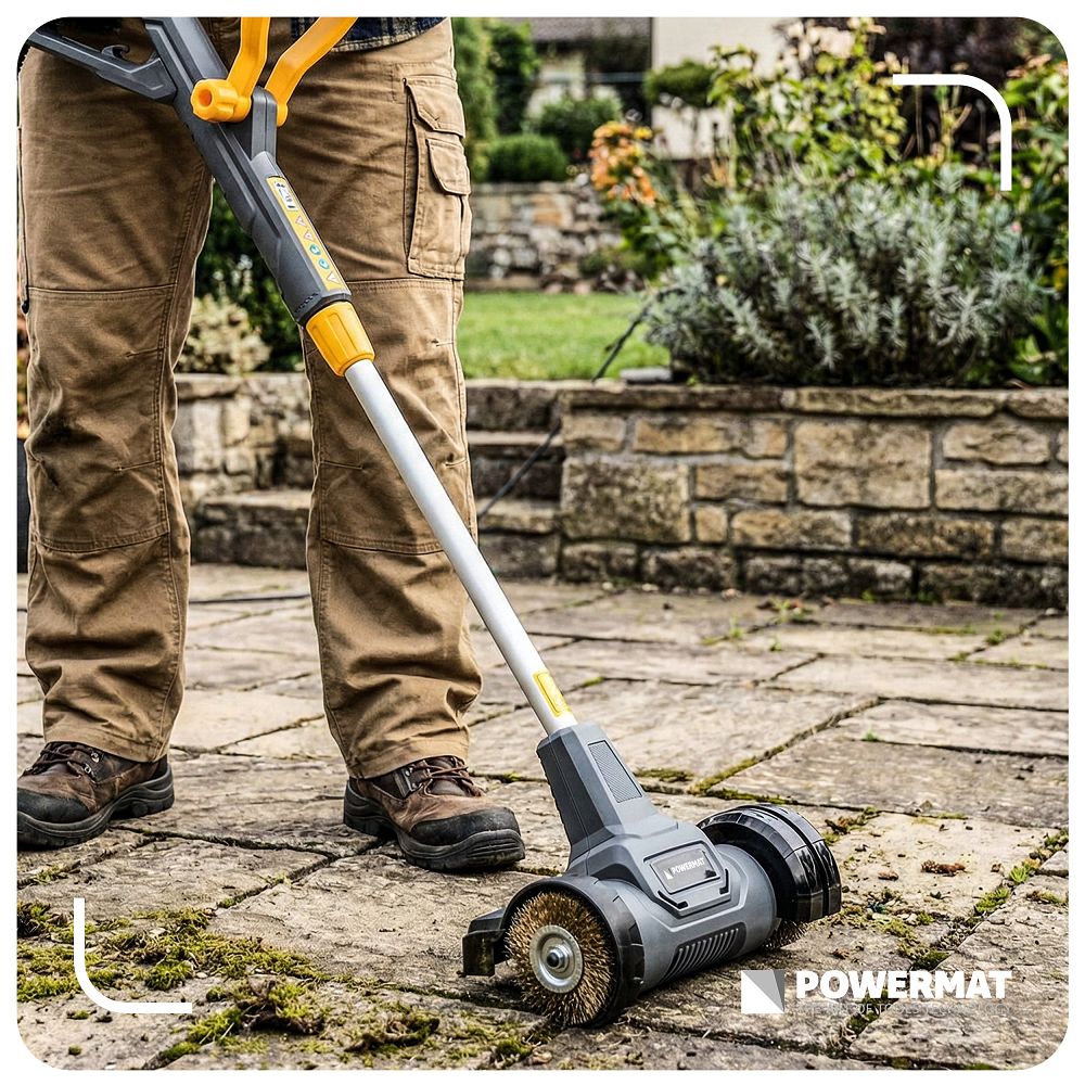 - Wysoka moc 800W – silnik zapewnia efektywne usuwanie chwastów i mchu z twardych nawierzchni bez nadmiernego wysiłku.